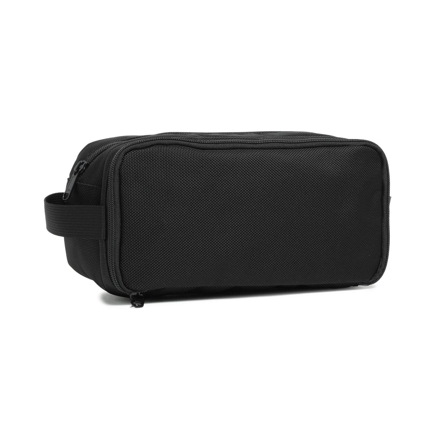 Keeping things sorted when traveling can be a challenge. Designed with the modern traveler in mind, DSPTCH's dopp kit has several thoughtful organization features. The main compartment has three elastic slots meant to hold travel-sized bottles, while the dual access mesh pocket has elastic organizers as well as a removable padded valet tray for keeping smaller items protected on a counter or bedside table. It's made from durable black ballistic nylon with grab handles at either end and an exterior zippered pocket for small items.