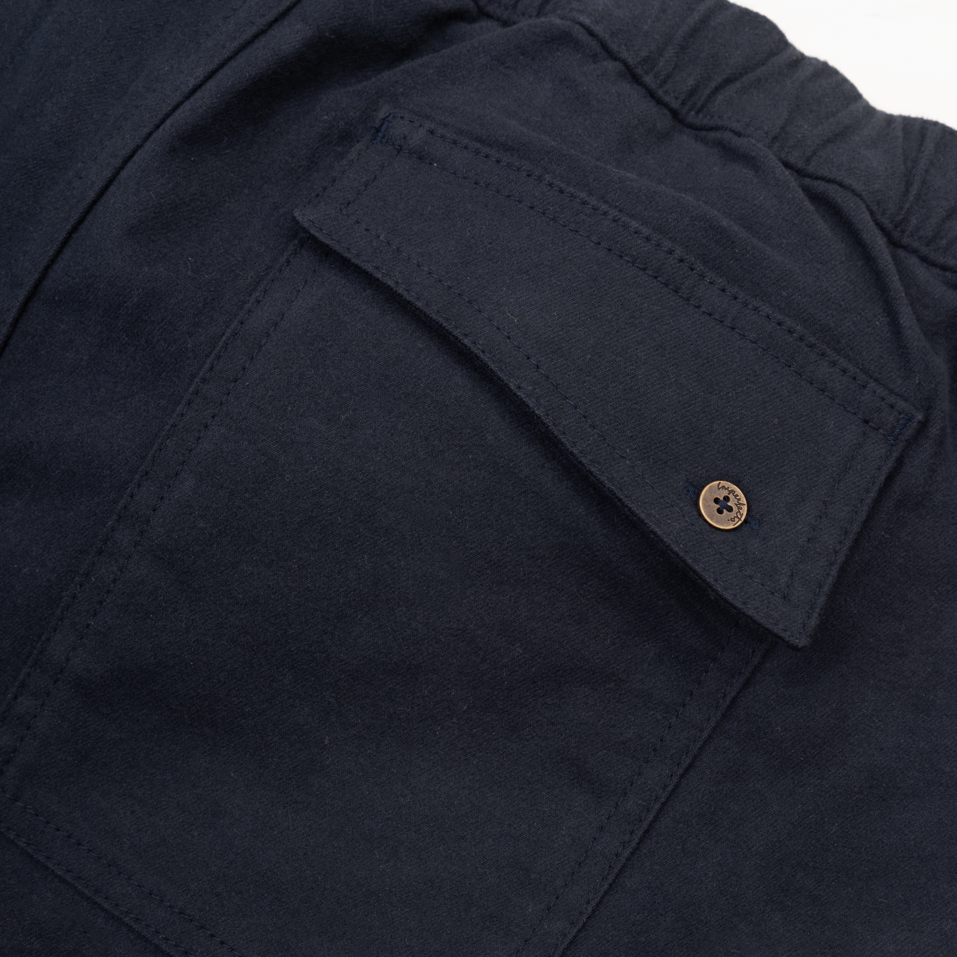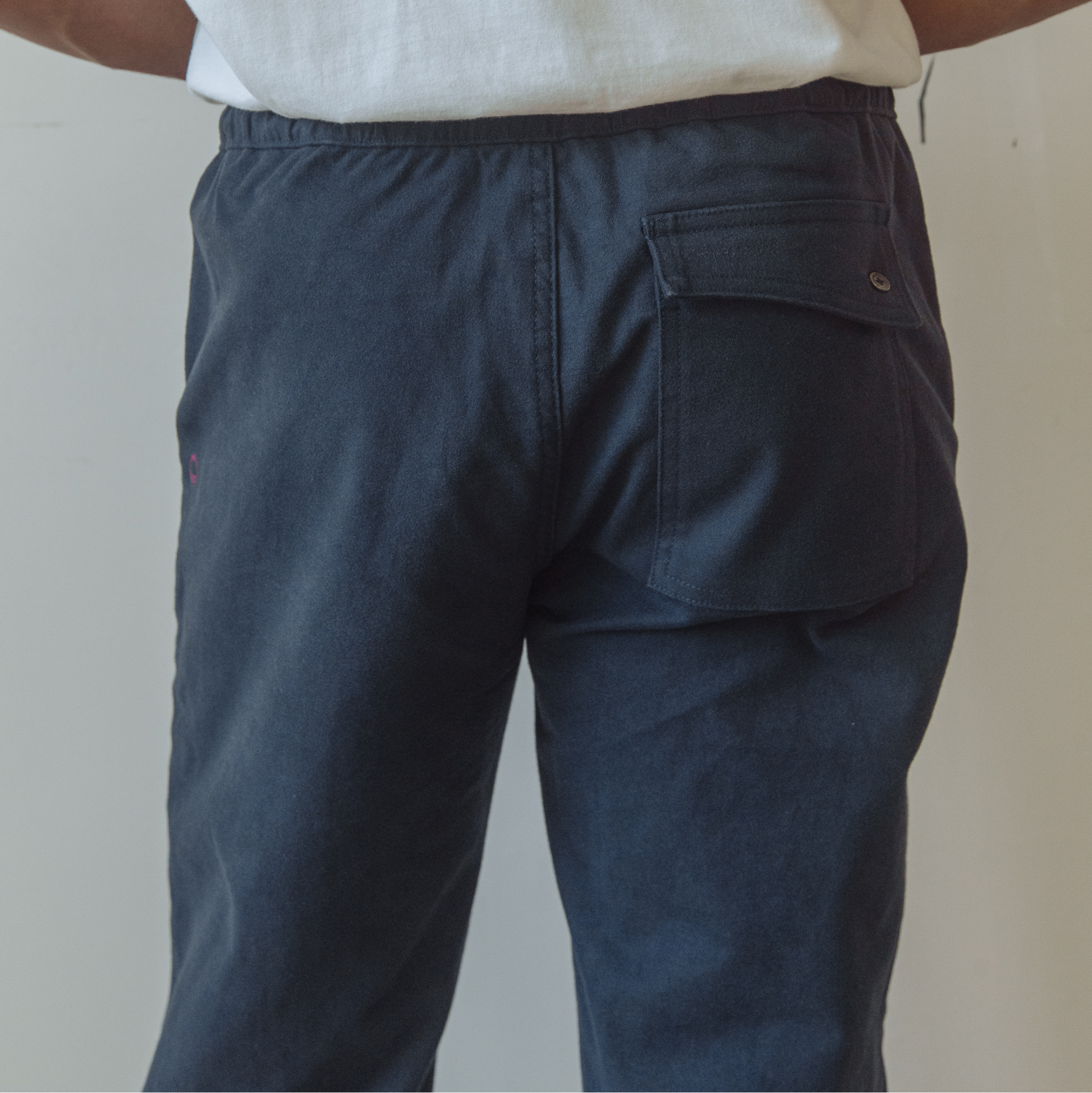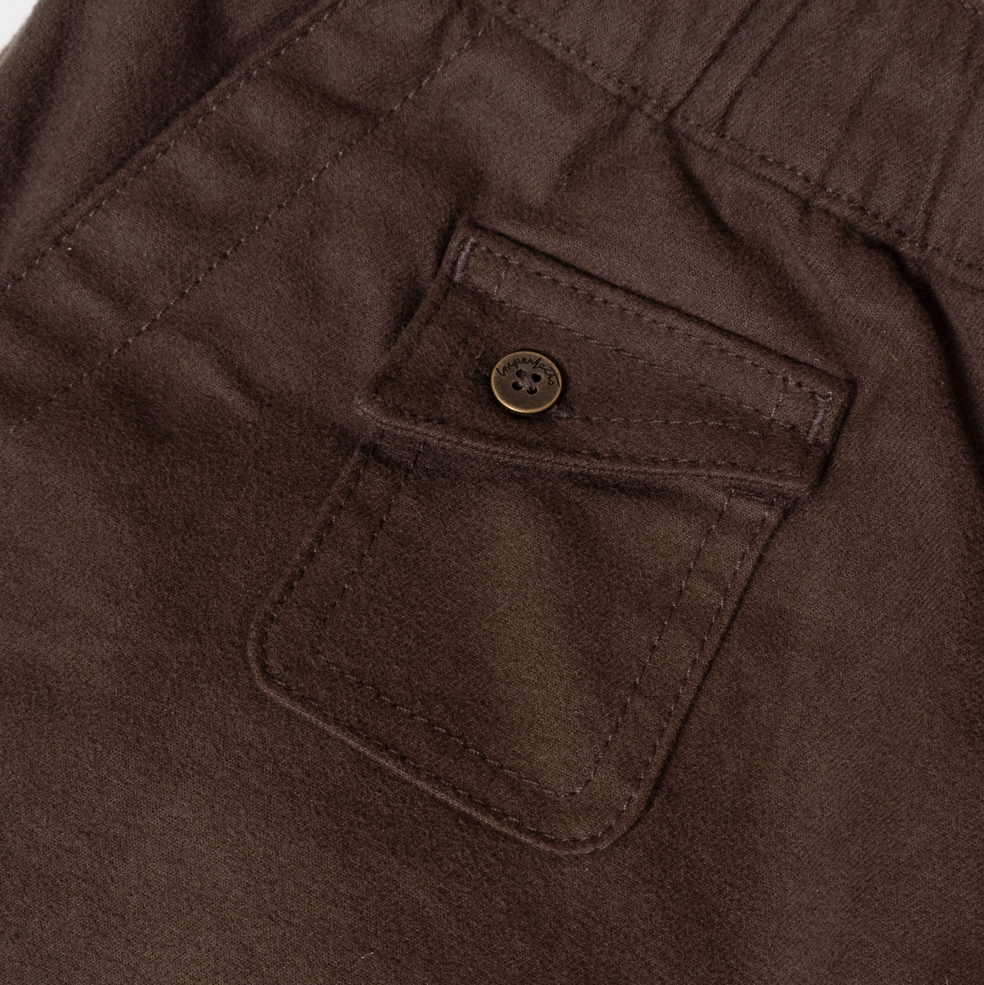 Cut from a richly brushed 9 oz moleskin with just a touch of stretch, the Easy Rider Pant feels soft but built to take on the everyday grind. The relaxed fit drapes cleanly and is cropped just above the ankle, giving it a modern silhouette that can go from coffee shop to campsite without a second thought. A combo waistband with a functioning button fly and elastic drawcord brings comfort and utility into perfect alignment. Thoughtful pocketing, including asymmetrical coin and back cell pockets, means everything you carry stays in reach and in style. They’re the kind of everyday trousers that never feel like a compromise.