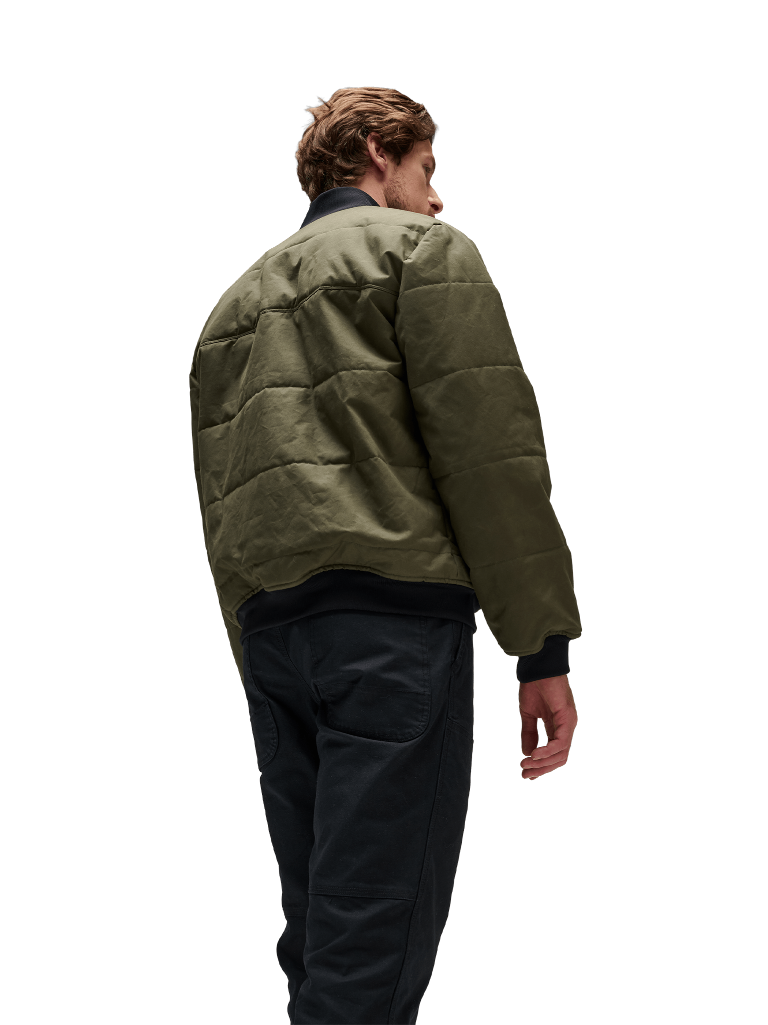The Encounter Flight Jacket blends MA-1 heritage with rugged canvas and Primaloft® warmth for street-ready style.