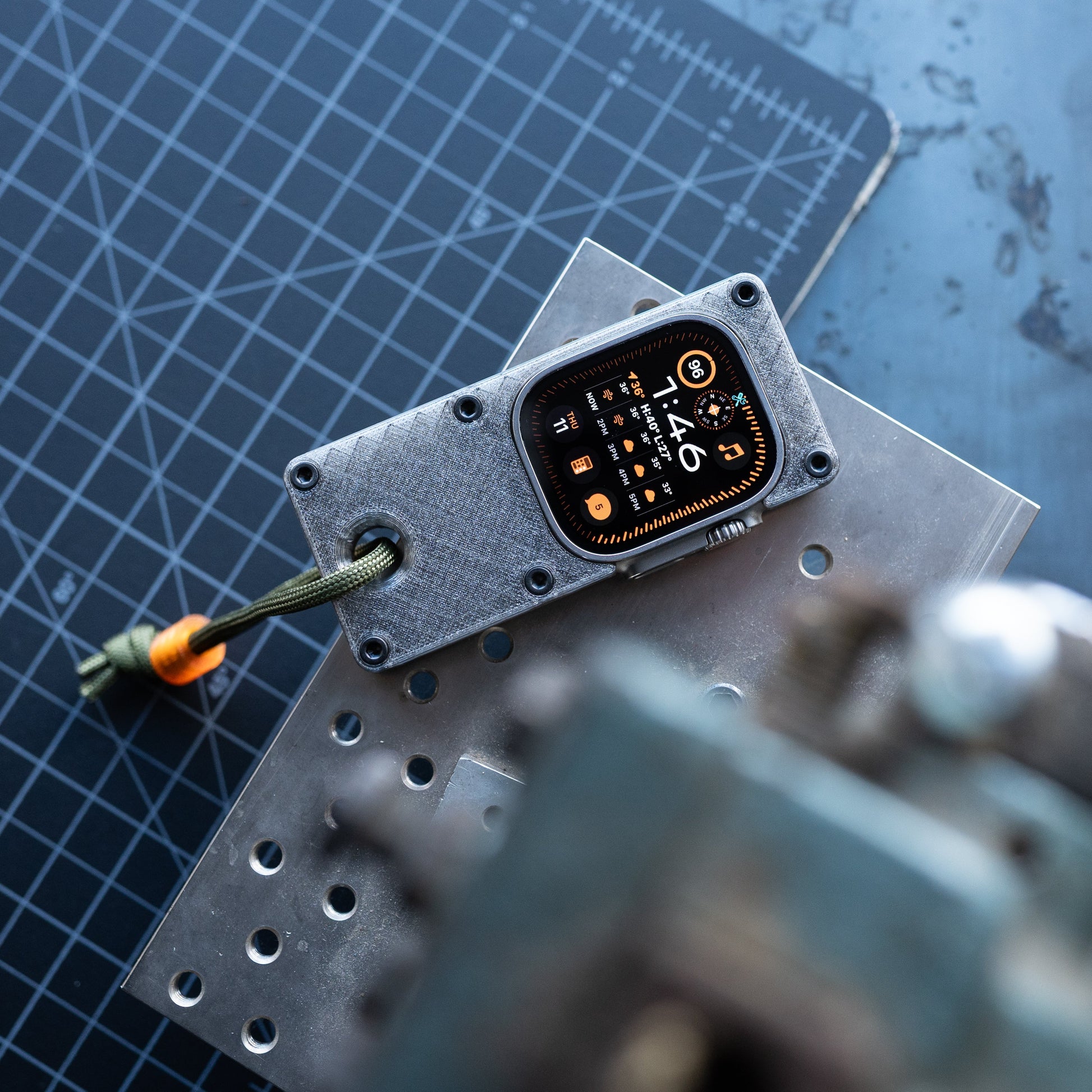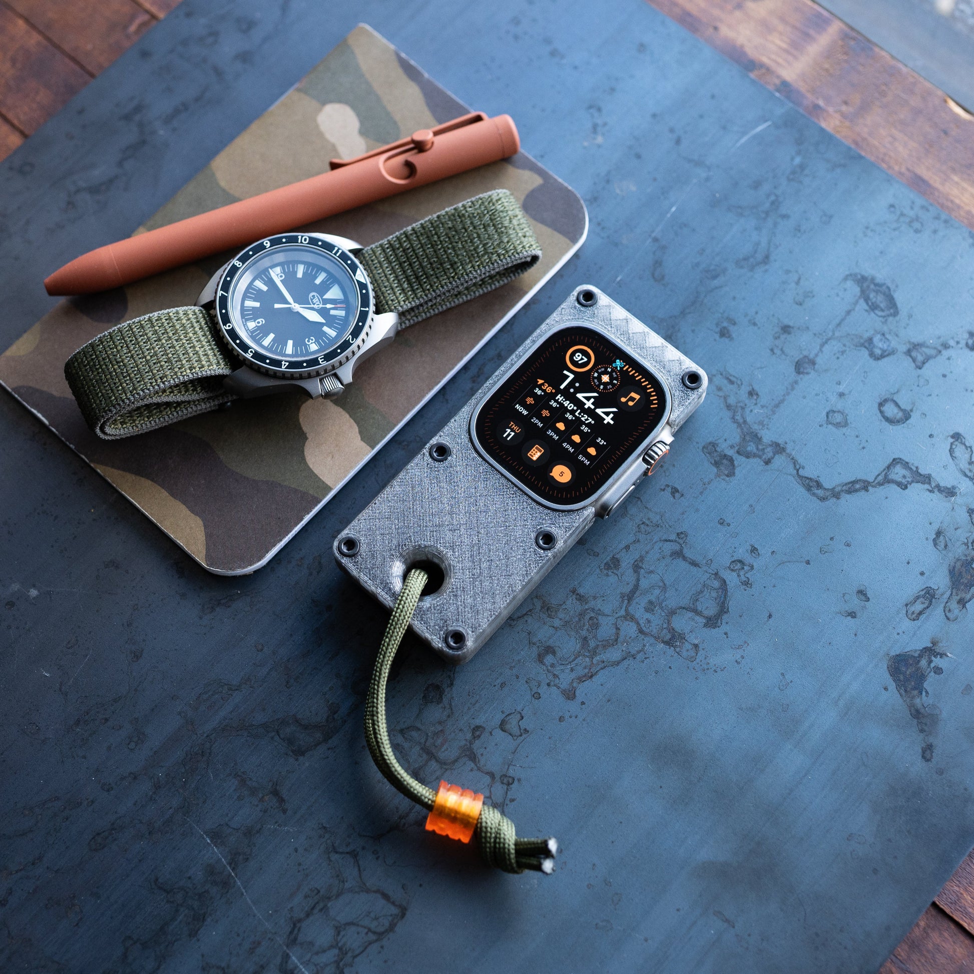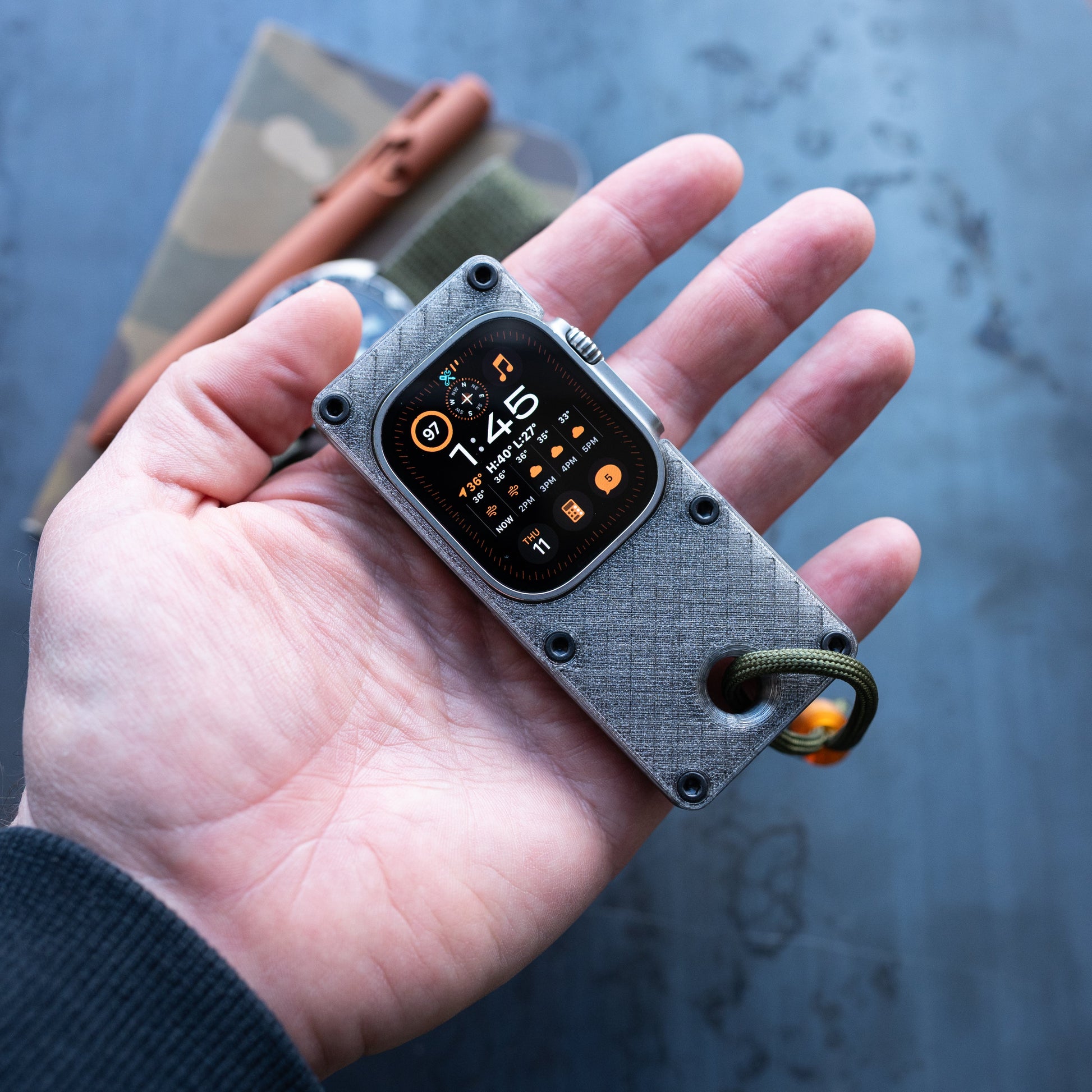 Elrow Industries turns your Apple Watch Ultra into a handheld mini phone with this 3D-printed PETG case. The concept: free up your wrist for an actual watch while keeping smart features accessible in a palm-sized format. The translucent case measures 3.74 inches tall by 1.65 inches wide by 0.53 inches thick at under an ounce, with textured surfaces for grip. An open back allows wireless charging without removal, while a lanyard hole with included paracord and bead keeps it secure. Hardware comes in stainless steel or black. Fits Apple Watch Ultra 1, 2, and 3. Switch off wrist detection for longer battery life, and you’ve got the essentials without the distraction.