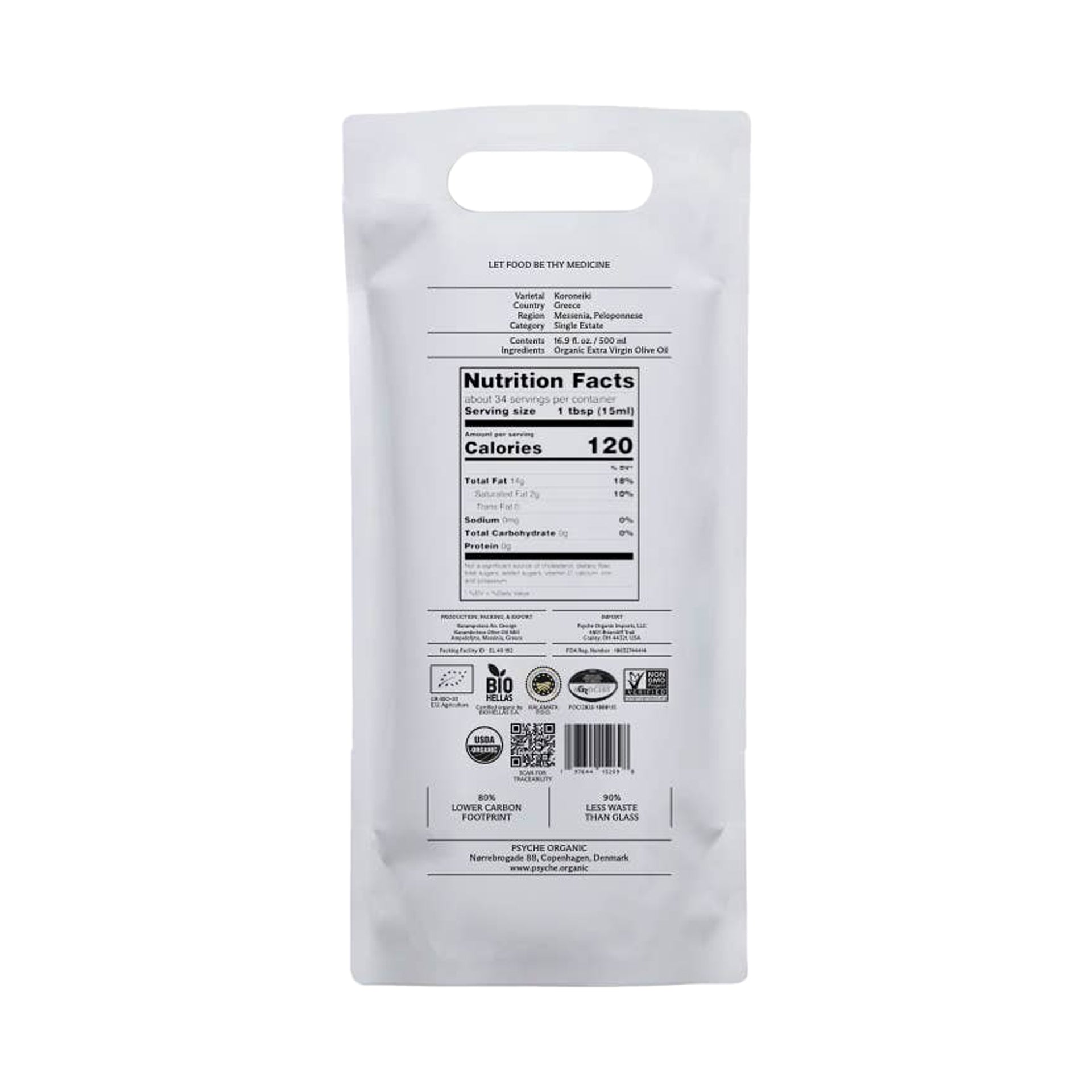 Used by iconic restaurants like Cervo's, Apollo Bar, and Scarr's Pizza, Psyche's single-estate olive oil is grassy and green with a peppery finish. Founded by former art publisher Theophilos Constantinou, the Copenhagen-based operation maintains direct relationships with Greek farmers to ensure transparency from grove to table. The oil is pressed from organic Koroneiki olives harvested early for maximum polyphenol content. Psyche cold-extracts within 24 hours of hand-picking, never deodorizing or blending to preserve the bold, peppery character and 0.25% acidity. The mechanical-only extraction keeps phenolic compounds intact while the pouch packaging blocks light and oxygen degradation that destroys cheaper oils in clear bottles. Drizzle it on everything you make this week, whether it's Tuesday night pasta or Saturday's dinner party.