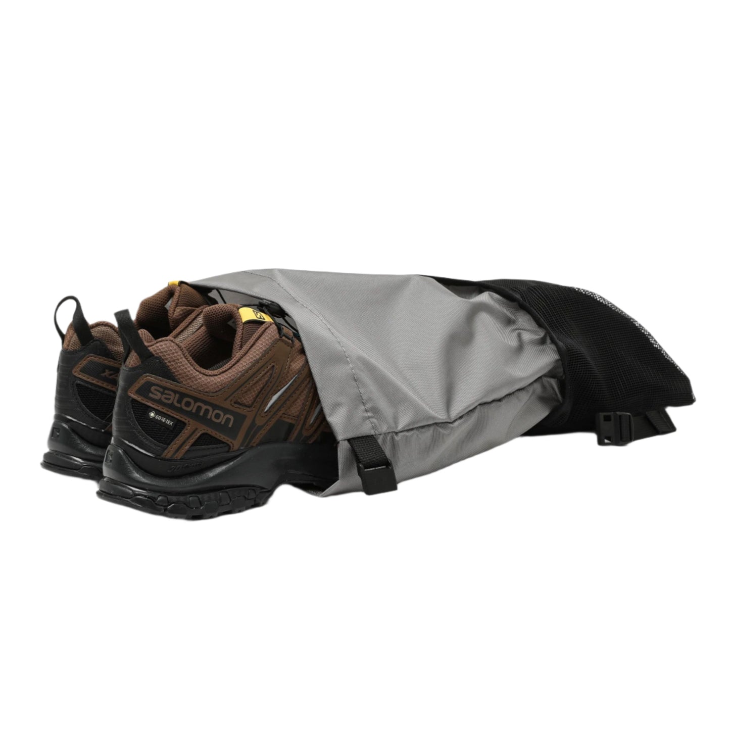 Part of the DSPTCH Gym/Work collection, this shoe tote is a perfect addition to your daily gear. The tote is made using 1680D Ballistic Nylon fabric with DWR coating and features an adjustable roll-top closure with magnetic buckles. Side panels made using pocket mesh offer ventilation, while a back panel offers a herringbone webbing handle and mounting points for a shoulder strap or clips.