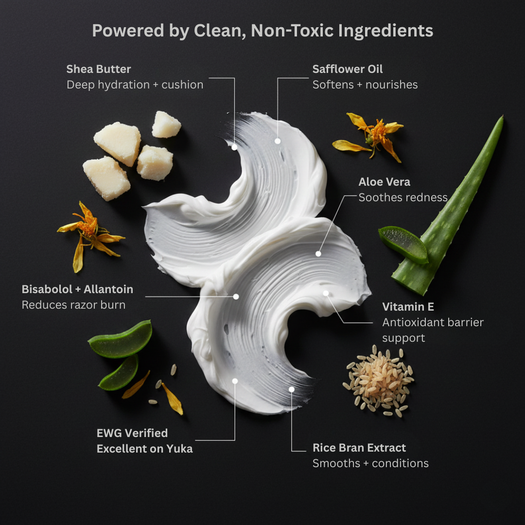 The Shave Duo delivers a smooth, irritation-free grooming experience with two essentials designed to work in perfect harmony. The ultra-cushioned Shave Cream softens hair and shields the skin barrier with soothing botanicals like aloe vera, shea butter, and ginger extract for a clean, effortless glide. Follow with the lightweight After Shave, a fast-absorbing formula enriched with chamomile, vitamin E, and sodium hyaluronate to calm, hydrate, and restore balance. Together, they leave your skin refreshed, protected, and ready for whatever’s next.