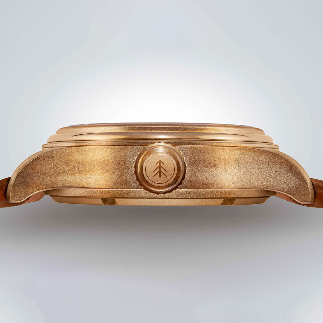 "Only you can prevent forest fires." So says Smokey the Bear, who celebrates his 80th anniversary this year. This handsome timepiece celebrates his legacy. Smokey appears at 12 o'clock on the textured green dial, joined by "ONLY YOU" text, a subtle tree graphic, and green Super-LumiNova-coated hands and numerals. The 38mm case is made from satin finish bronze, so like any good outdoor item, it will gain a unique patina over time. A Seiko automatic movement powers the proceedings, and the watch arrives with tan leather and canvas NATO straps with quick-release spring bars so you can easily switch them out.