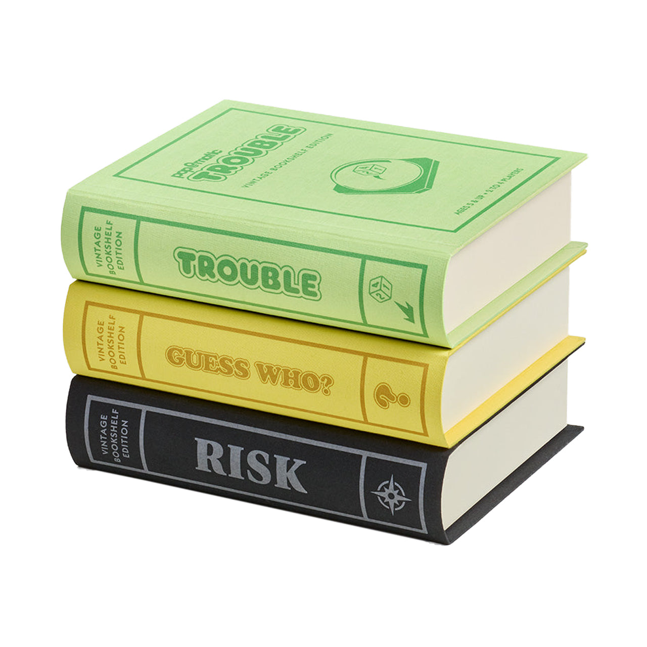 Die Zeiten, in denen man abgenutzte Brettspielschachteln versteckte, sind vorbei. In einem mit Leinen umwickelten Buch aufbewahrt, verleihen diese Vintage-Bücherregalspiele den Hasbro-Klassikern eine ausstellungswürdige Aufwertung. Das anspruchsvolle Design hört nicht beim Äußeren auf. In jedem Clue-, Scrabble- oder Monopoly-Buch befinden sich hochwertige Teile, die vom Originalspiel inspiriert sind, darunter Siebdruckbretter, Holzplättchen, Spielsteine aus Zinkdruckguss und bedruckte Spielkarten aus Karton.