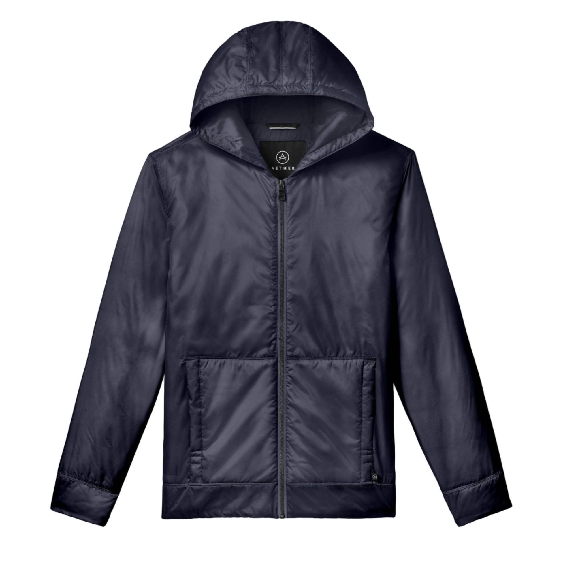 The Eco Space Hoodie in Total Eclipse redefines AETHER’s core design with a deep, modern tone and technical precision. Made from 100% recycled Japanese ripstop and insulated with 60 g PrimaLoft Bio, it offers lightweight warmth that packs easily for life on the move. A PFC-free DWR finish adds protection from wind and light rain, while the tailored silhouette transitions effortlessly from outdoor pursuits to city wear. Recycled hardware and refined stitching emphasize AETHER’s commitment to sustainable craftsmanship. In Total Eclipse, it carries a subtle sophistication—sleek, versatile, and built to perform anywhere.