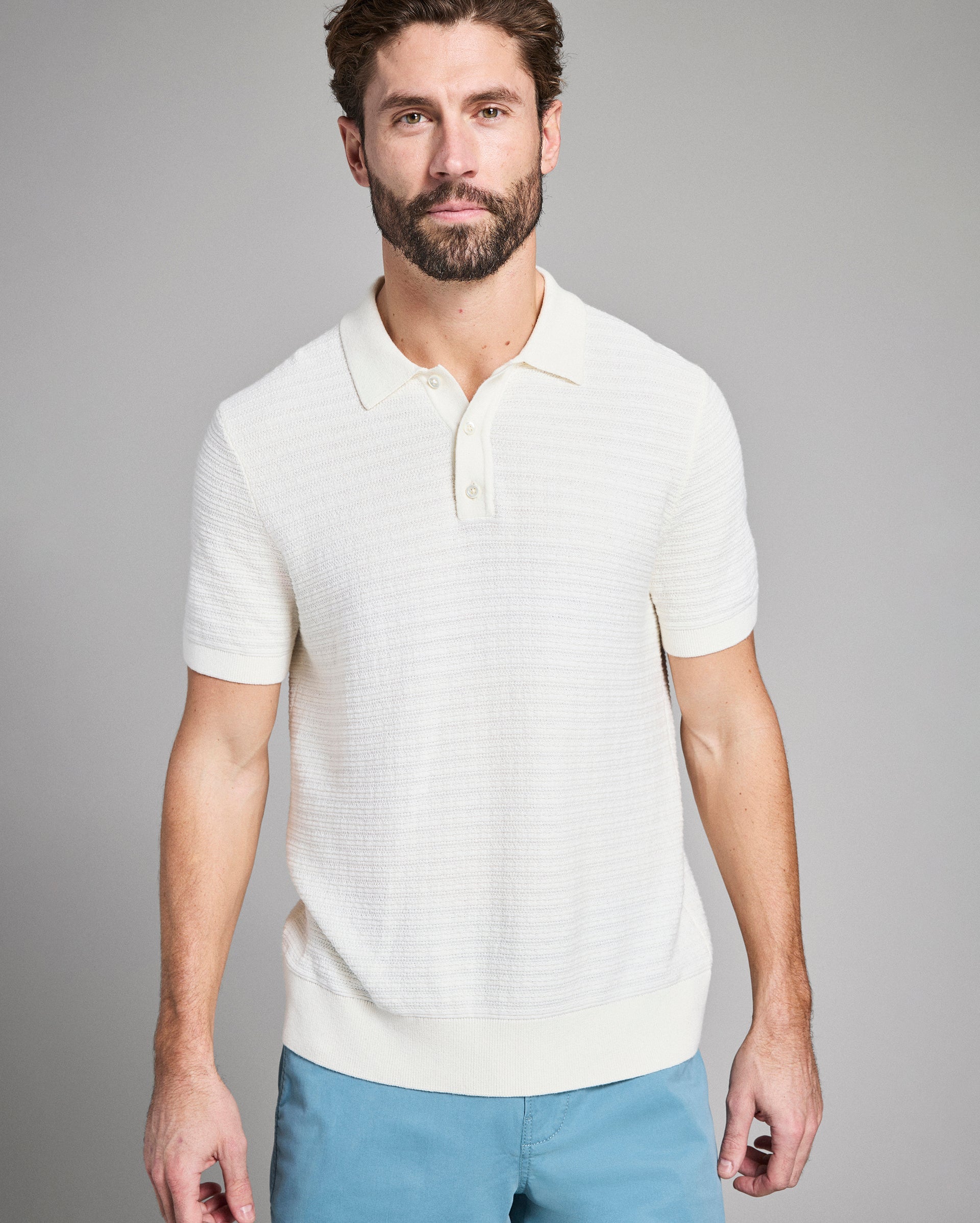 The Lachlan Links Polo takes a traditional golf staple and gives it the Billy Reid treatment. Knit from lightweight cotton with subtle textural striping, it lands somewhere between a classic polo and a refined sweater shirt. Polished enough for a clubhouse lunch, but it's relaxed enough for weekend wear. Details like the roll-back English shoulder construction keep the silhouette clean while minimizing bulk, and smoked trochus buttons elevate the placket just enough to stand out. The result is the kind of polo that feels quietly sophisticated without trying too hard. Throw it on with chinos or worn denim and it carries the same effortless confidence either way.