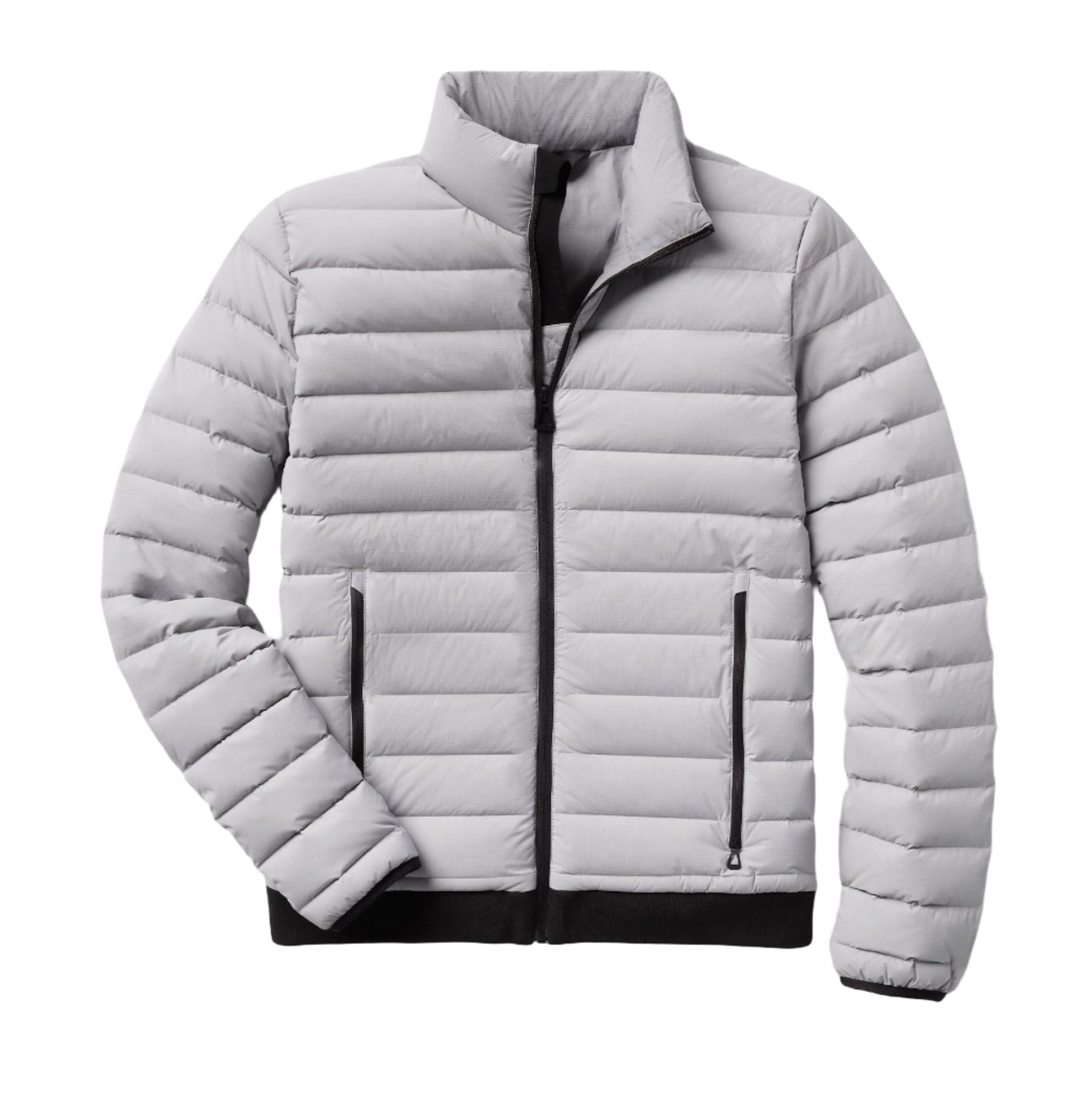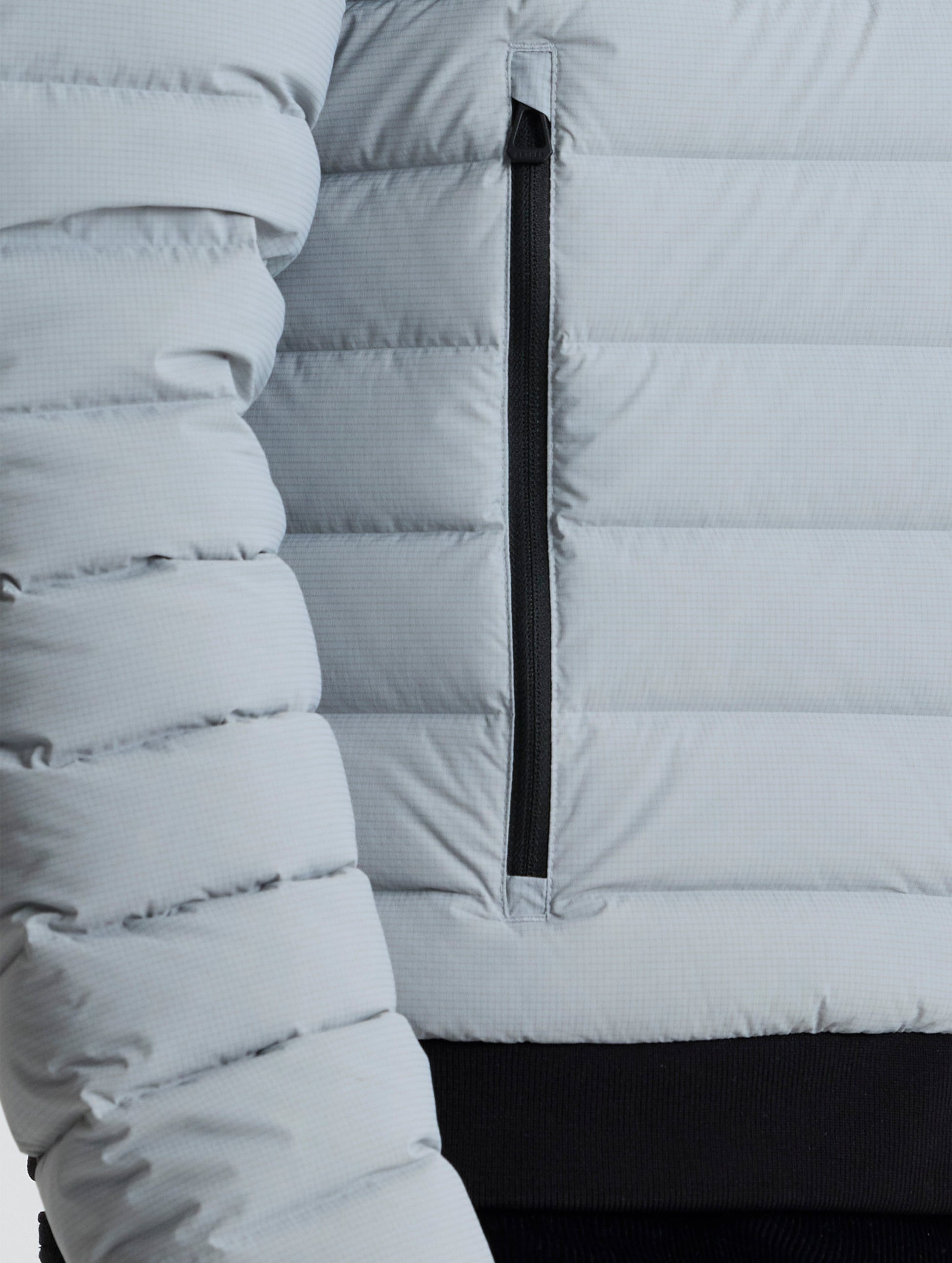 The Launch Full-Zip Jacket in Sky Grey reimagines cold-weather performance with a lighter, more modern tone. Built from pre-baffled stretch ripstop, it integrates 800-fill-power goose down directly into the fabric for seamless warmth and freedom of movement. A 200 gsm PrimaLoft® Gold–lined collar delivers extra comfort where it counts, while stretch-nylon bindings at the edges keep the fit flexible and clean. Discreet storage options—including a hidden phone pocket and interior patch pocket—preserve its refined, minimal aesthetic. The Sky Grey finish gives it a contemporary edge, equally at home on alpine mornings or city commutes.
