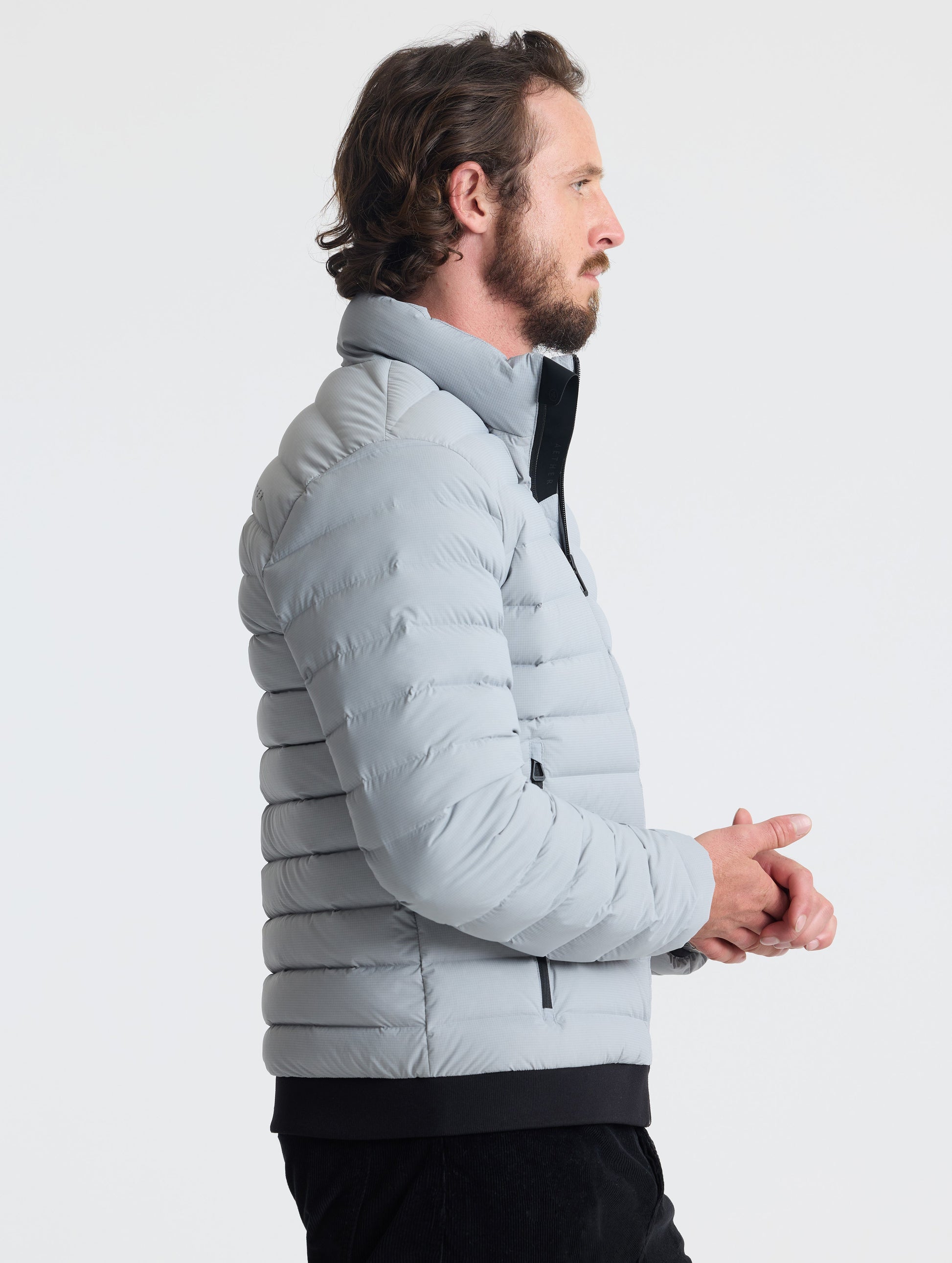 A streamlined down jacket engineered for warmth, freedom of movement, and modern minimalism.