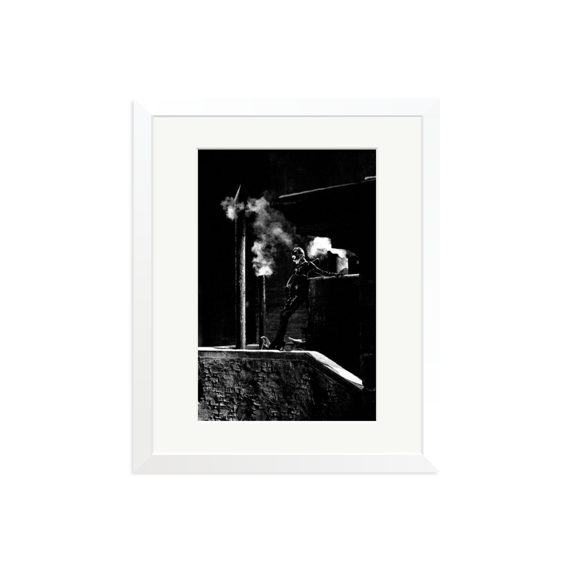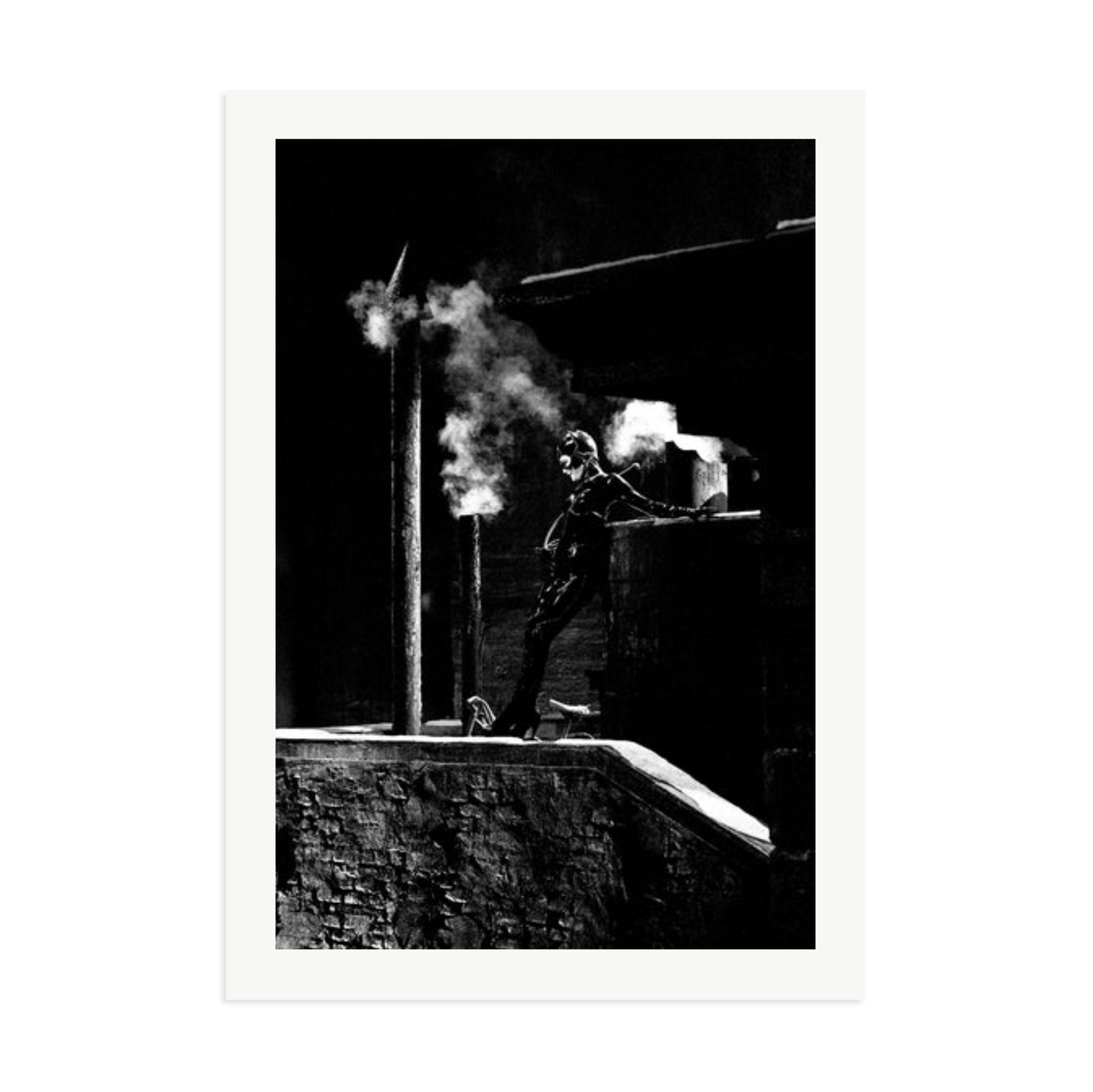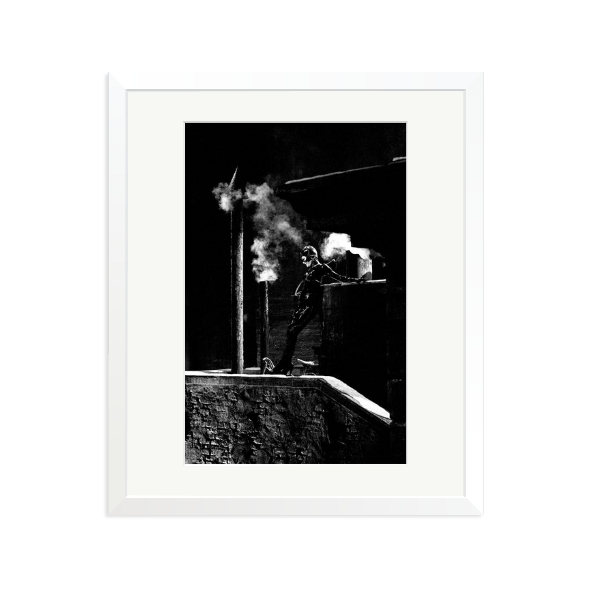 Captured by Michael Tighe, this black-and-white portrait of Michelle Pfeiffer as Catwoman on the set of Batman Returns showcases her poised yet enigmatic presence, embodying the character's duality. Taken during the film's production in 1992, the image offers a rare behind-the-scenes glimpse into Pfeiffer's transformation into the iconic role. Printed on premium Fuji Crystal Archive paper and framed in solid wood, this limited edition print is a striking tribute to one of cinema's most memorable performances.