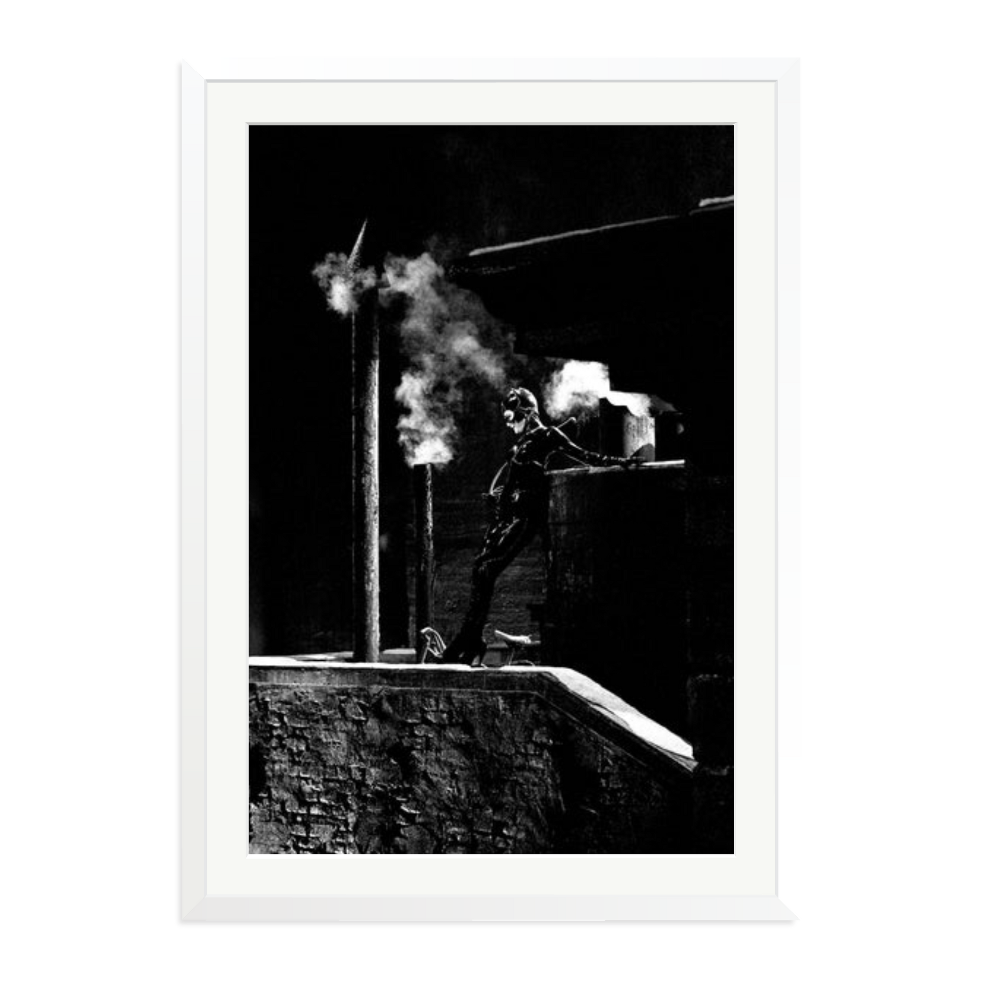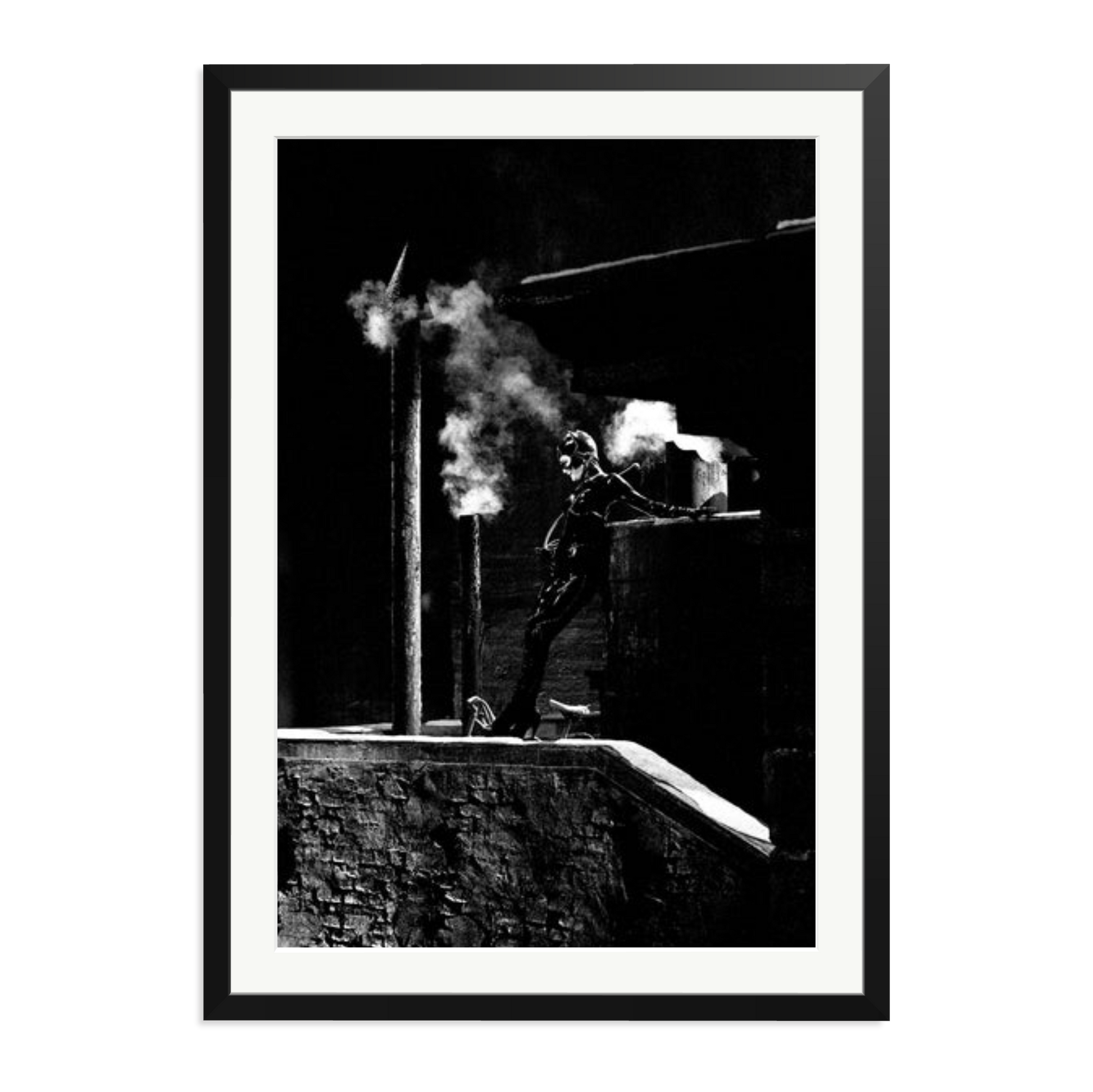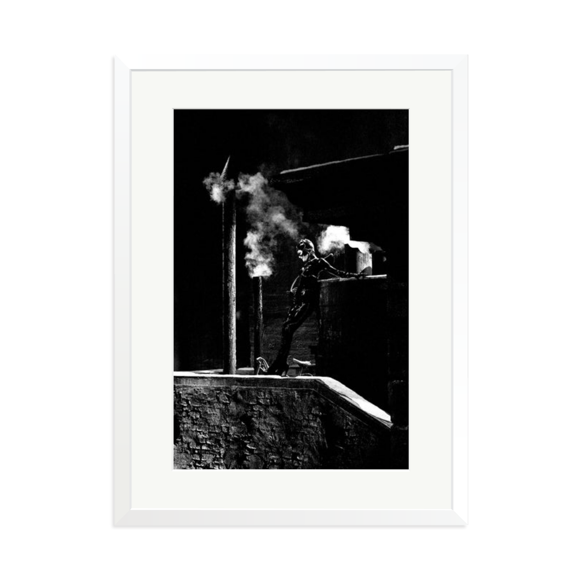 This framed print from the set of Batman Returns in 1992 captures Michelle Pfeiffer as Catwoman.