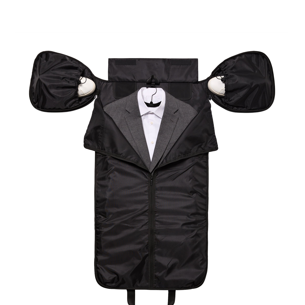 A clever design allows this duffle to carry a suit plus shoes, a laptop, and 3+ days of clothes.