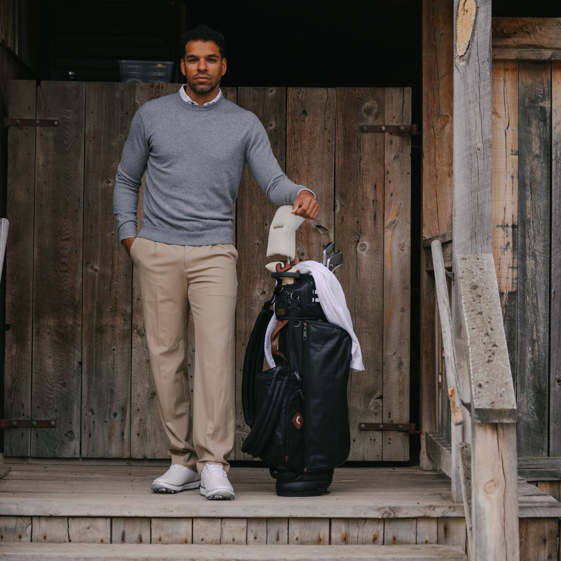 Jones Sports Co.'s Trouper combines heritage craftsmanship with modern innovation. Featuring premium vegan leather construction that mimics vintage tour bag aesthetics, this Heritage Collection piece delivers timeless style without excess weight. The reinforced stand provides exceptional stability, while newly engineered ergonomic zippers ensure effortless pocket access. Built by a company with five decades of expertise in quality bag construction, the Trouper is designed for those who appreciate functional elegance along the walk.