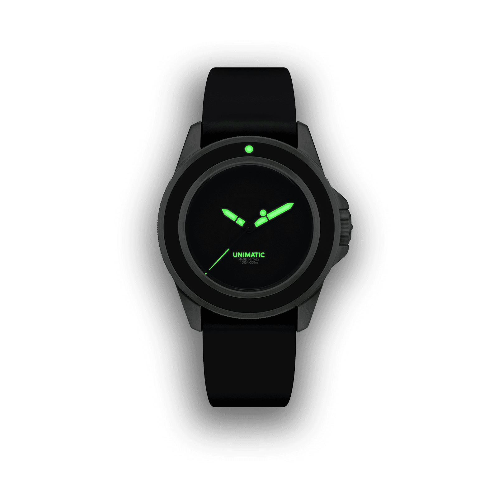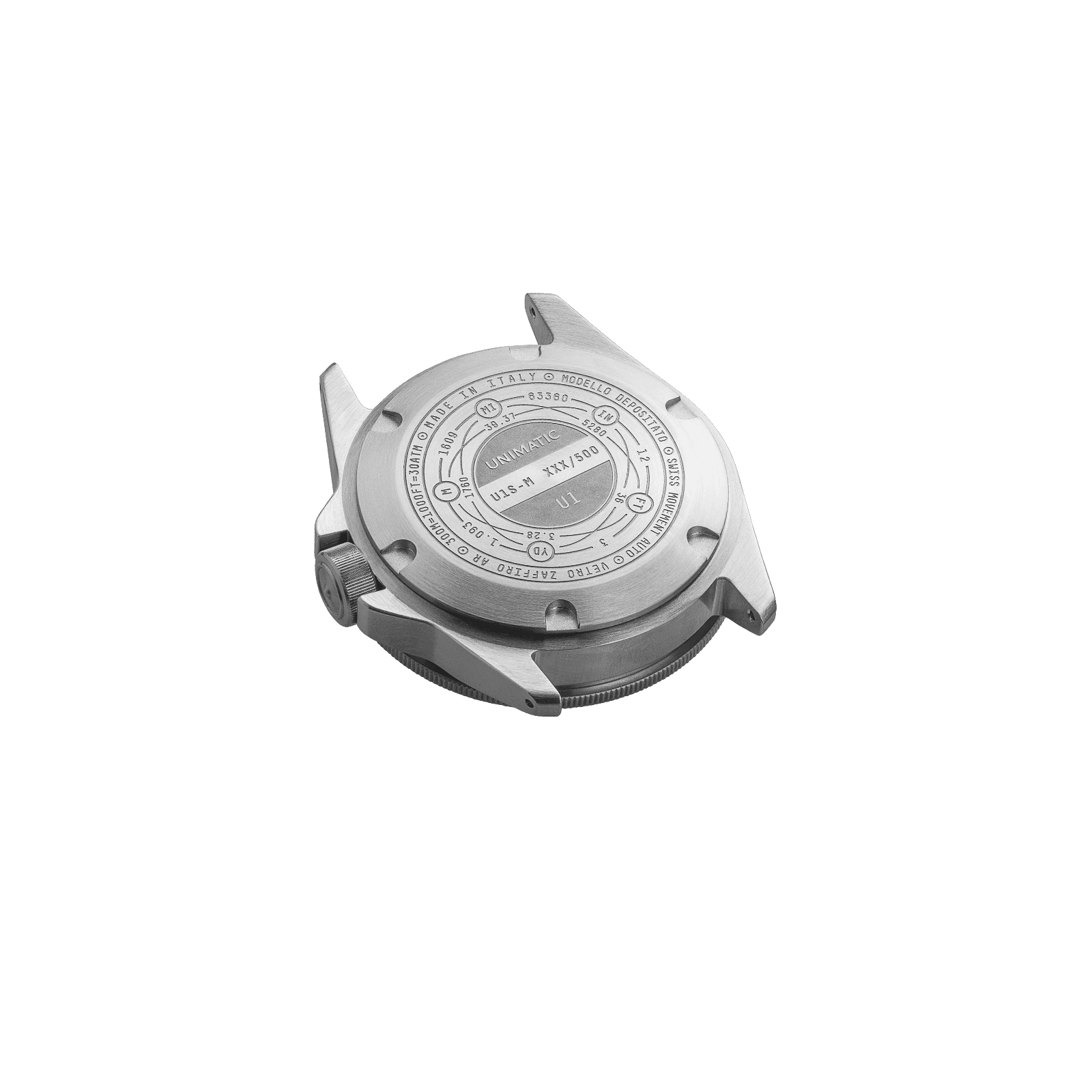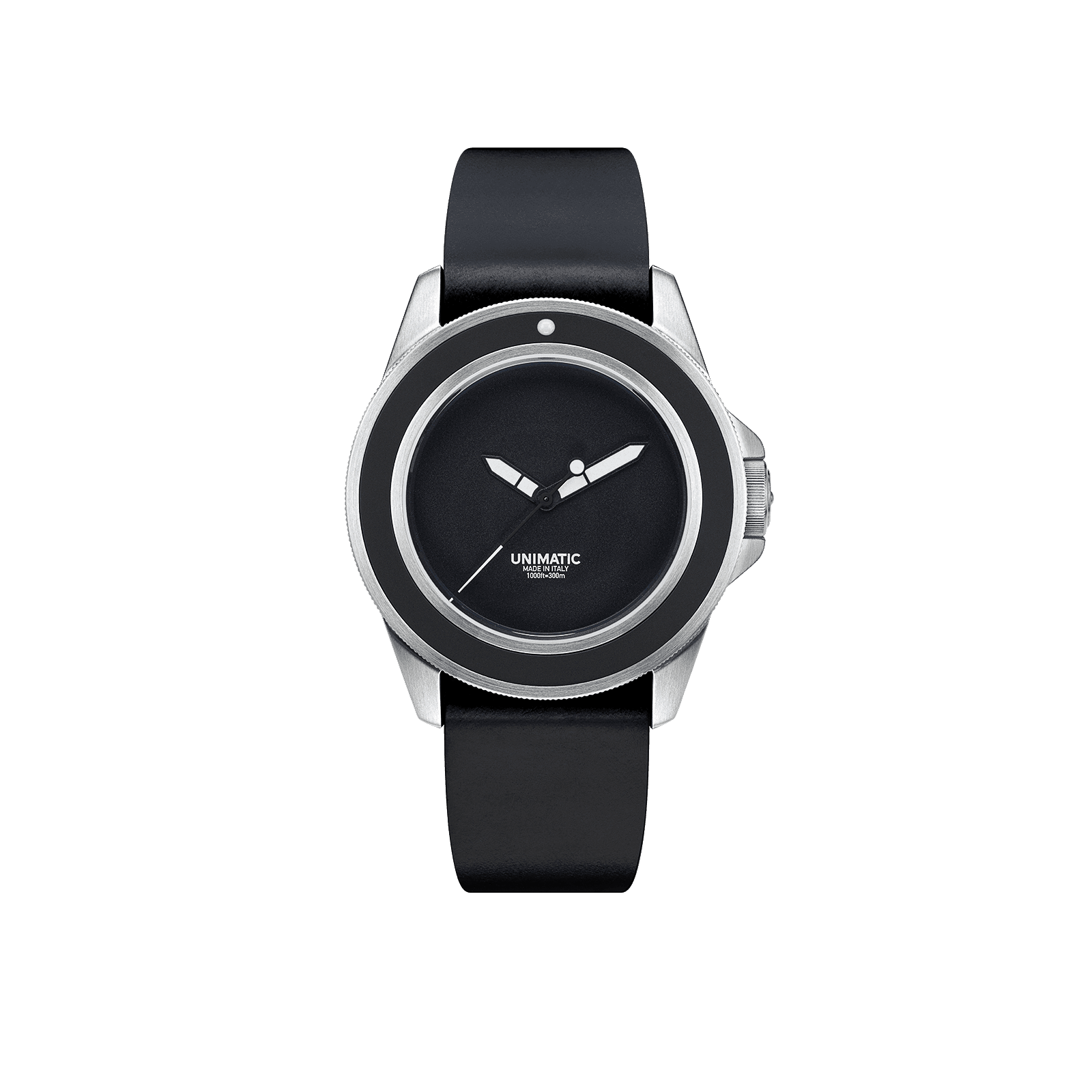 Built in Italy with a stripped-back dive watch aesthetic, the U1S-M pairs a matte black aluminum bezel insert with a vacuum-black dial marked by a clean white logotype and a raised lume dot filled with Super-LumiNova C1. Inside, the watch runs on the reliable Swiss Sellita SW200-1 automatic movement, delivering dependable mechanical performance beneath the minimal exterior. The case is matched with a black two-piece calf leather strap for everyday wear, while an included seatbelt-style NATO strap with brushed steel hardware offers a more utilitarian option.