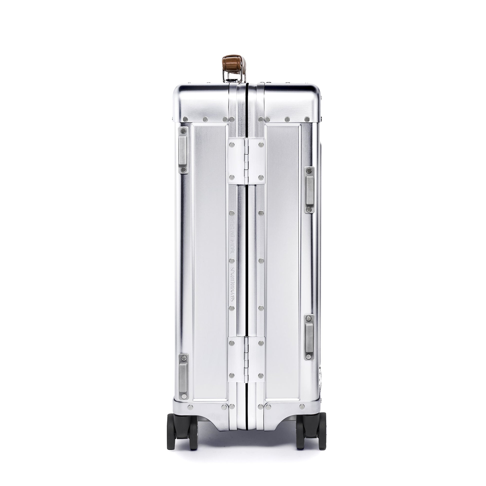 Built to meet carry-on size limits for major U.S. airlines, the Sterling Pacific 40L Cabin Travel Case delivers the same craftsmanship and materials found across the brand’s full-size models. Its aluminum body with reinforced corners resists impact, while cast components and a retractable trolley ensure durability in motion. Italian full-grain leather handles add comfort and contrast against the brushed metal shell, and 360° wheels with metal caps keep it steady and smooth through airports. Secured by dual TSA latch locks and backed by a lifetime warranty, it’s a compact case built for decades of dependable travel.