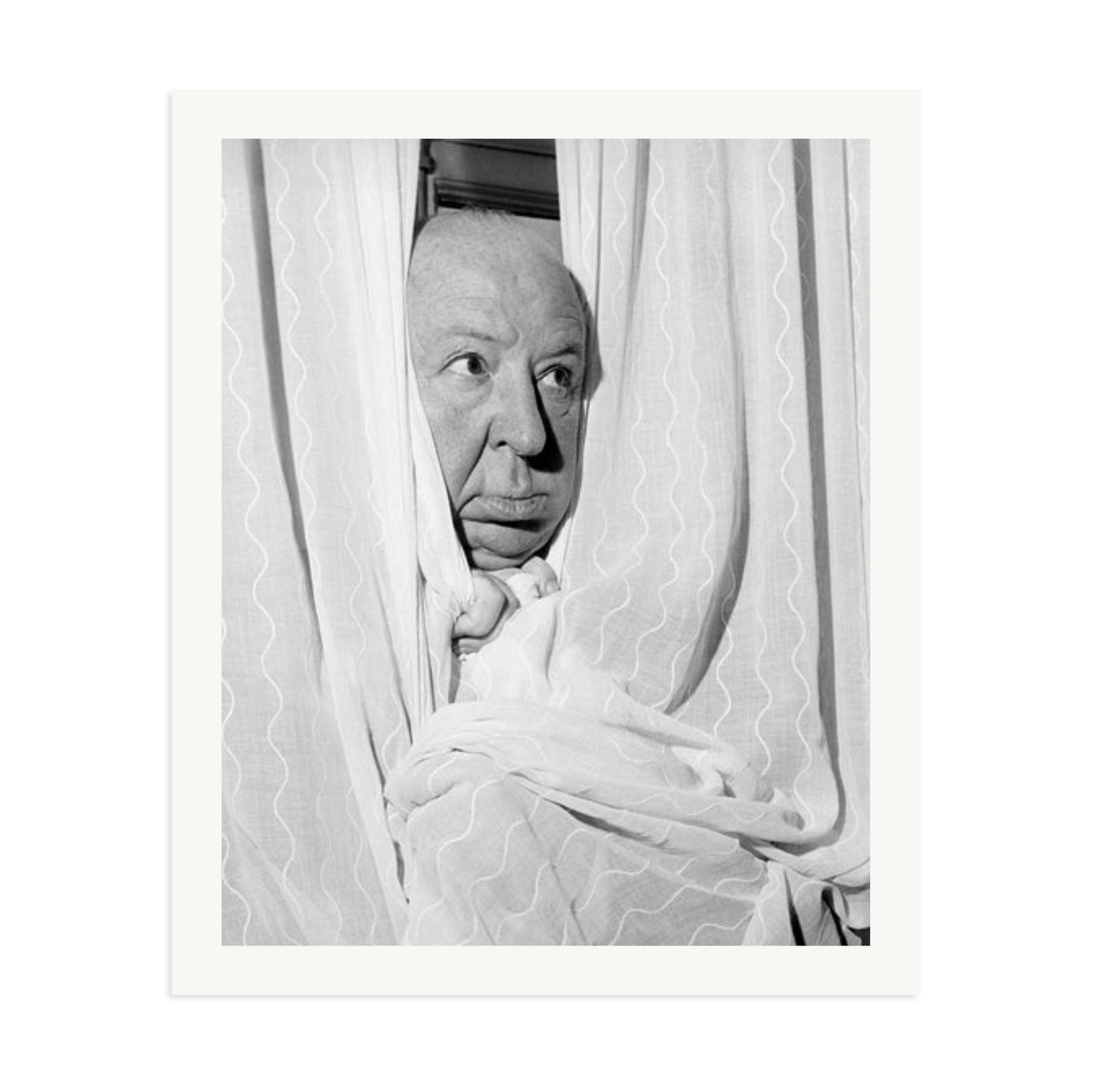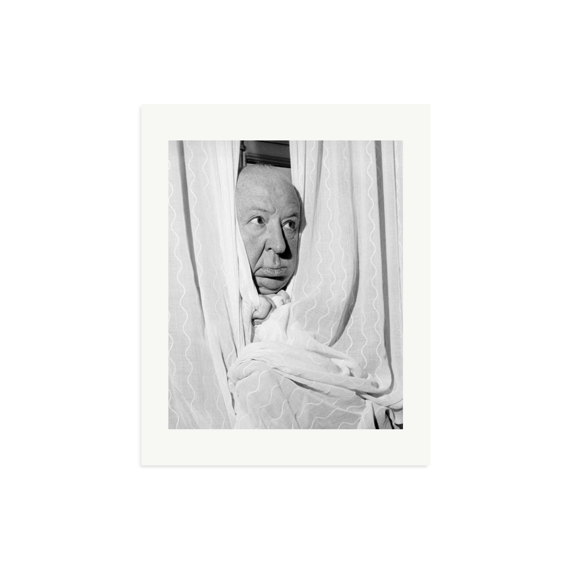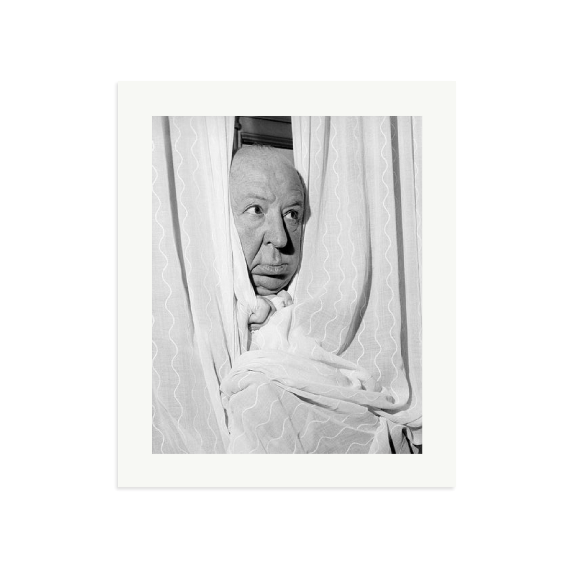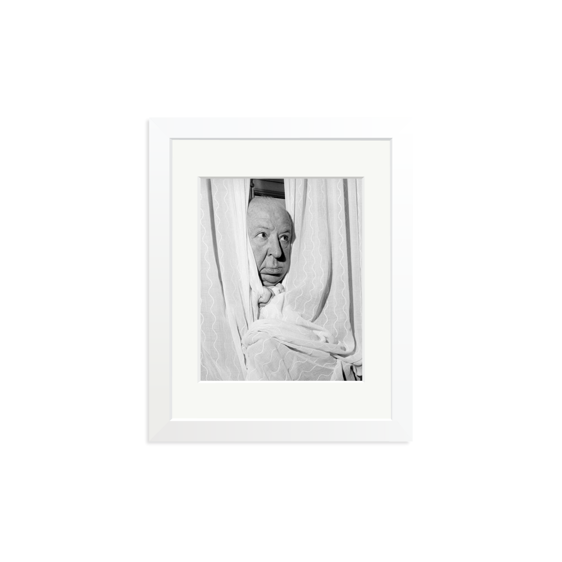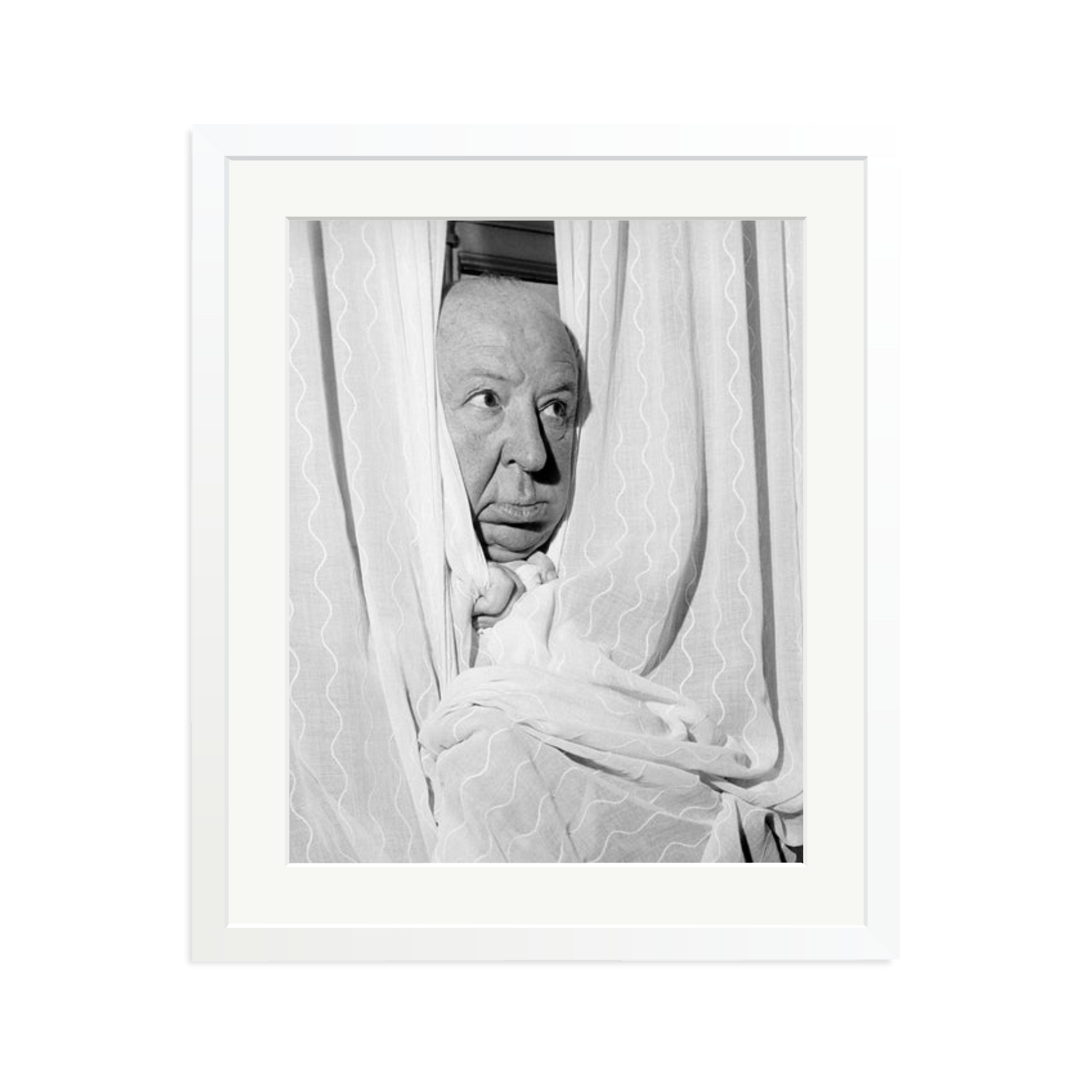 This framed print from Sonic Editions captures the legendary Alfred Hitchcock partially hidden behind curtains, radiating the suspenseful charm that made him a cinematic icon. Taken months before the release of his 50th film, Torn Curtain, this black-and-white photograph by Hal Morey blends Hitchcock's signature sense of mystery with the refined elegance of London's Claridges Hotel. Printed on premium Fuji Crystal Archive paper and framed in solid wood, it's a museum-quality portrait that arrives ready to hang.