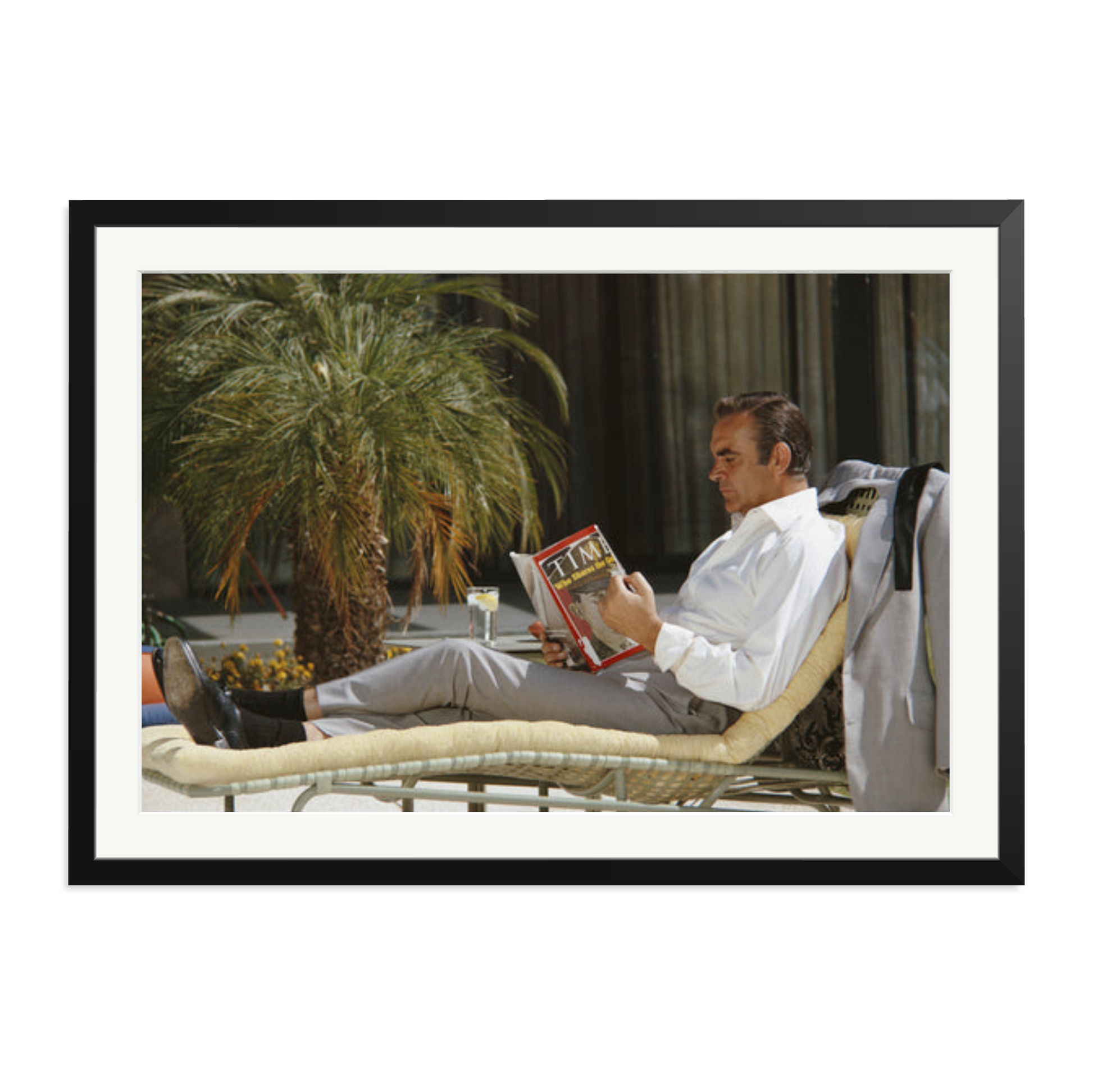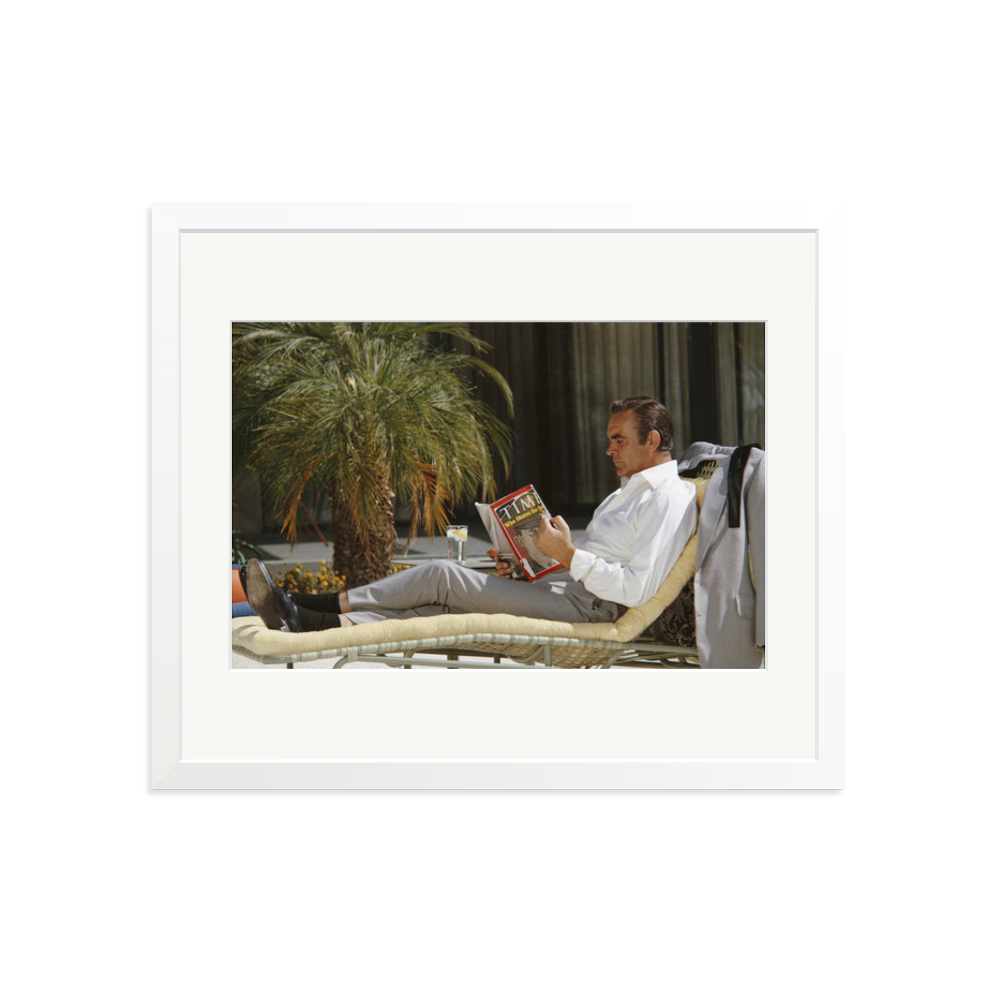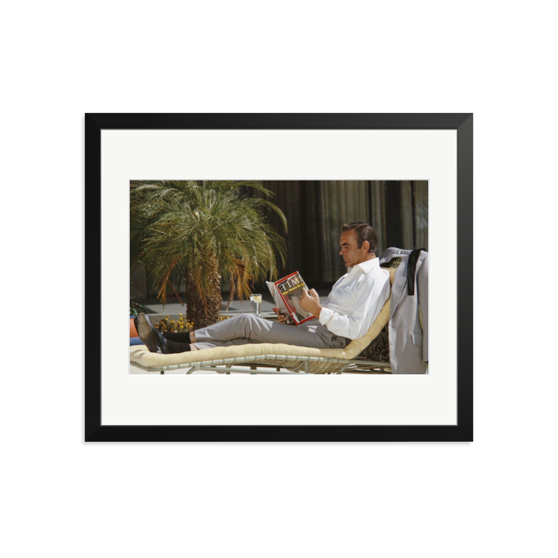 The late Sean Connery was one of the most important film icons of the 20th century. Sir Sean was also the first actor to portray James Bond on the big screen in 1962. Shot by Anwar Hussein, this framed print finds Connery lounging and reading a TIME magazine on the set of the film Diamonds Are Forever in 1971 — his sixth movie in the role of 007. Printed to order on Fuji crystal archive paper, numbered and certified, and comes encased inside a hand-made solid wood black frame that's ready to hang. Limited edition of 495.