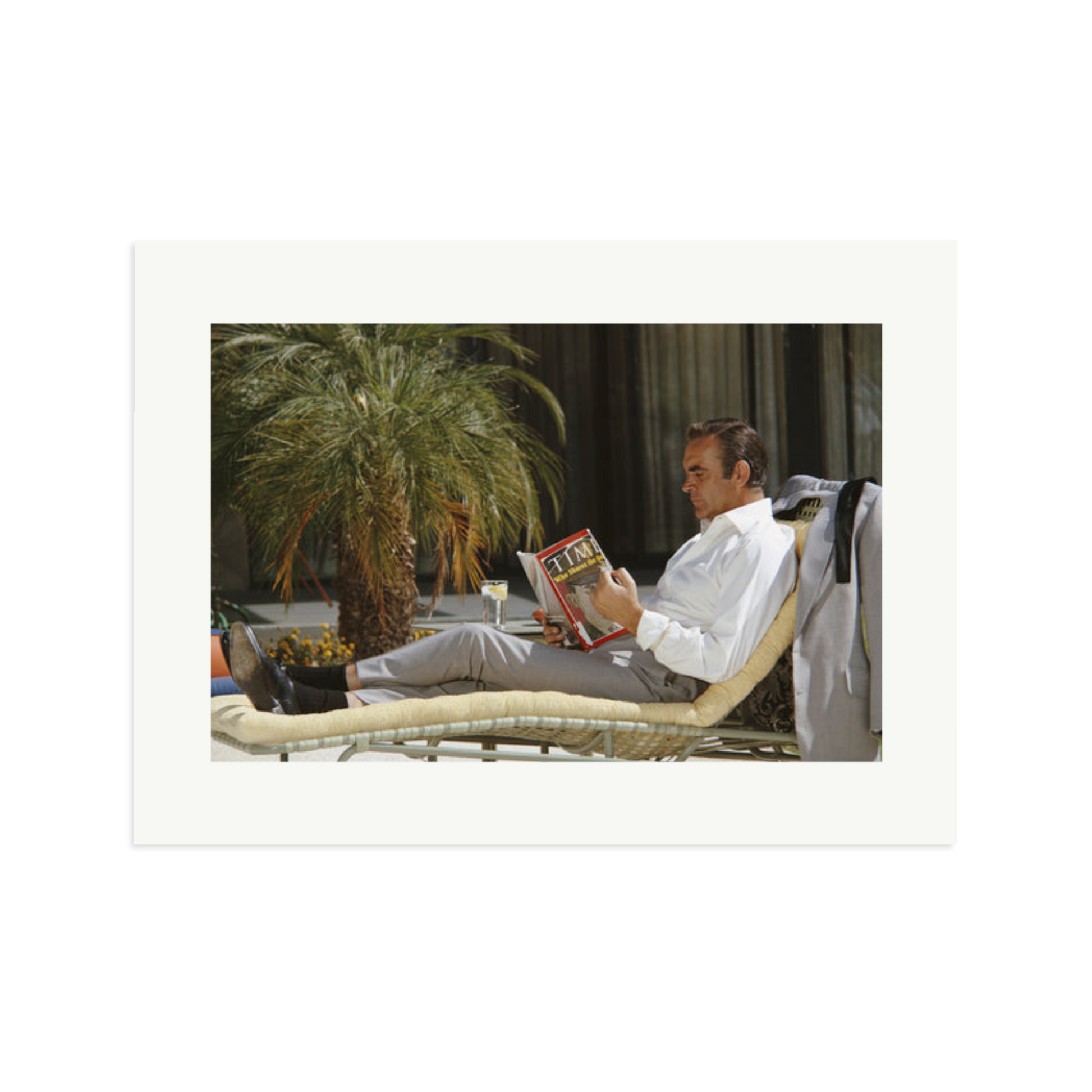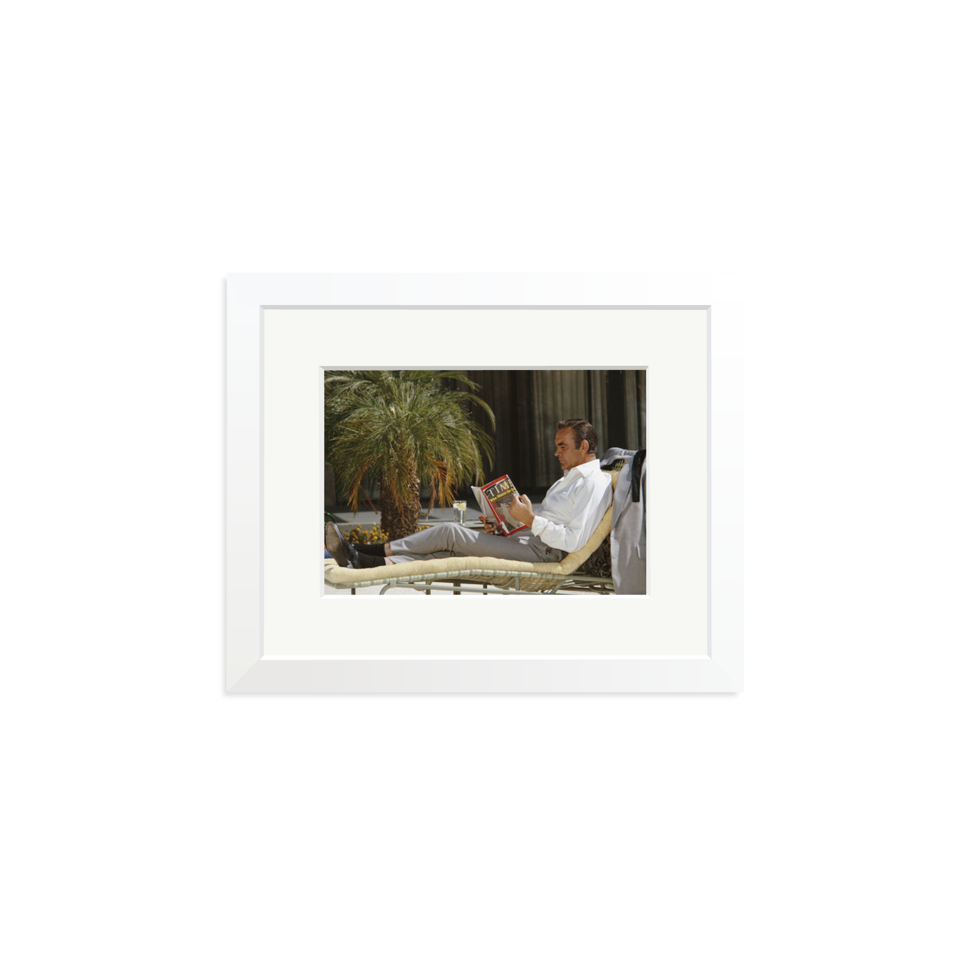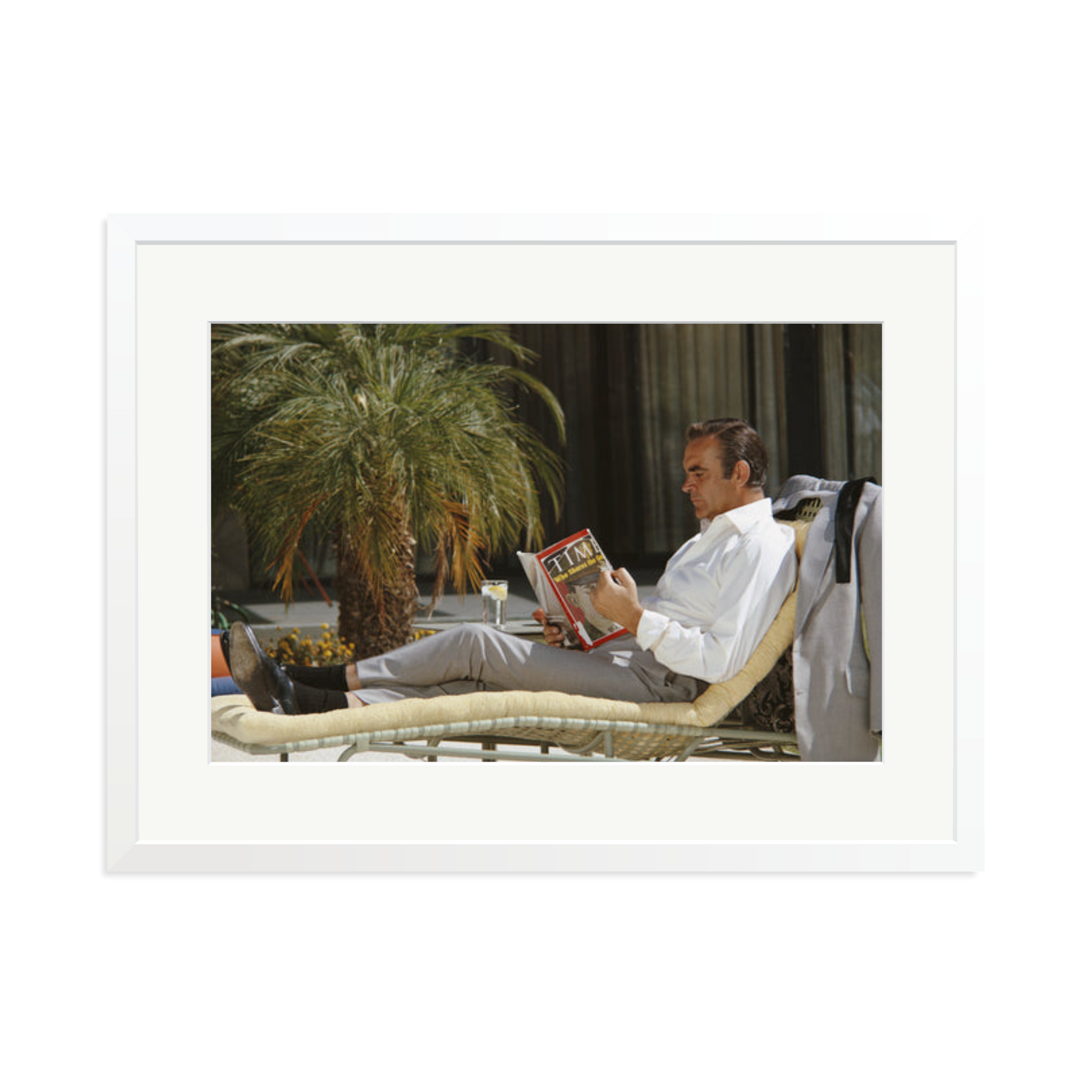 The late Sean Connery was one of the most important film icons of the 20th century. Sir Sean was also the first actor to portray James Bond on the big screen in 1962. Shot by Anwar Hussein, this framed print finds Connery lounging and reading a TIME magazine on the set of the film Diamonds Are Forever in 1971 — his sixth movie in the role of 007. Printed to order on Fuji crystal archive paper, numbered and certified, and comes encased inside a hand-made solid wood black frame that's ready to hang. Limited edition of 495.