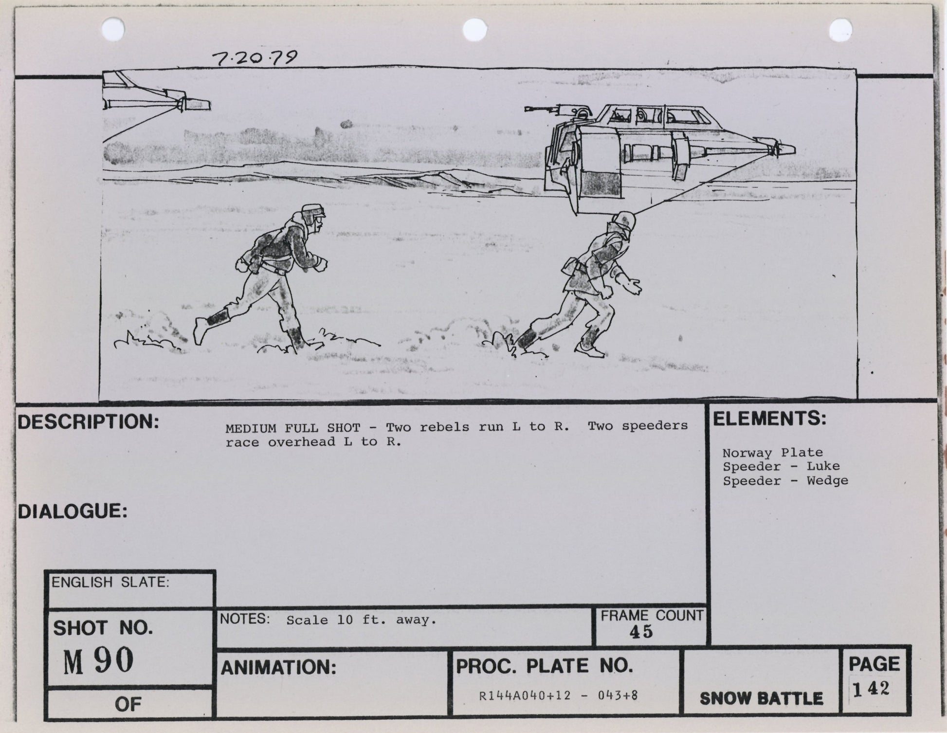 ABOUT THE ART: This storyboard print comes from the collection of award-winning miniature and optical effects artist Lorne Peterson. Peterson was invited by fellow model maker John Dykstra to work in the miniature and optical effects department of George Lucas' Star Wars: A New Hope, where he helped design and build the Star Destroyers, Imperial TIE fighters, and other classic vehicles. During pre-production, Peterson, Dykstra, and their cohort of fellow artists working under Lucas co-founded effects company Industrial Light & Magic.