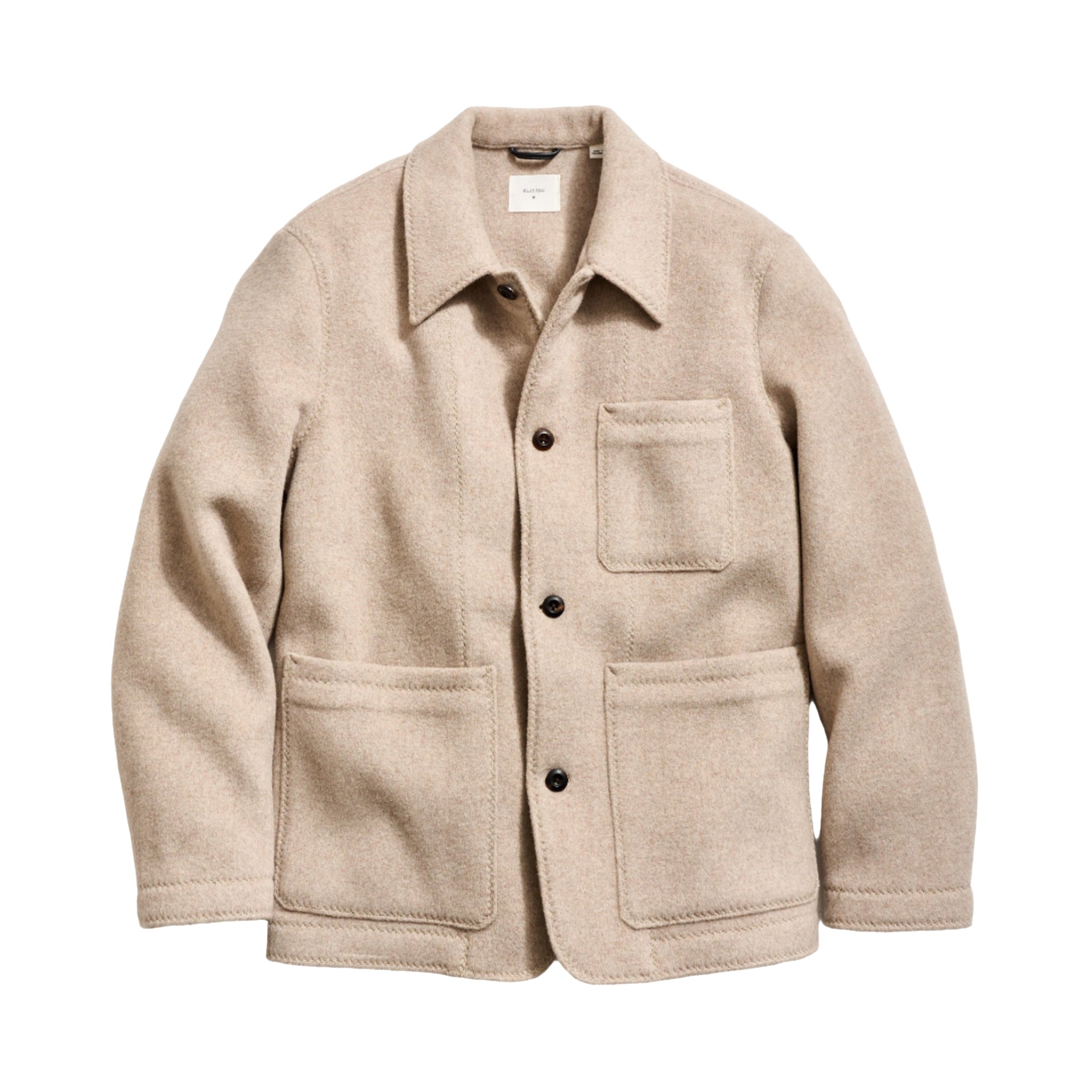 Cut in a classic chore silhouette, this coat swaps canvas for a felted wool blend that holds shape without stiffness. The dove-heather finish reads refined, while horn buttons, patch pockets, and a leather locker loop keep it grounded in utility. Warm, light, and easy to layer, it’s the kind of everyday outer layer that earns a spot by the door.