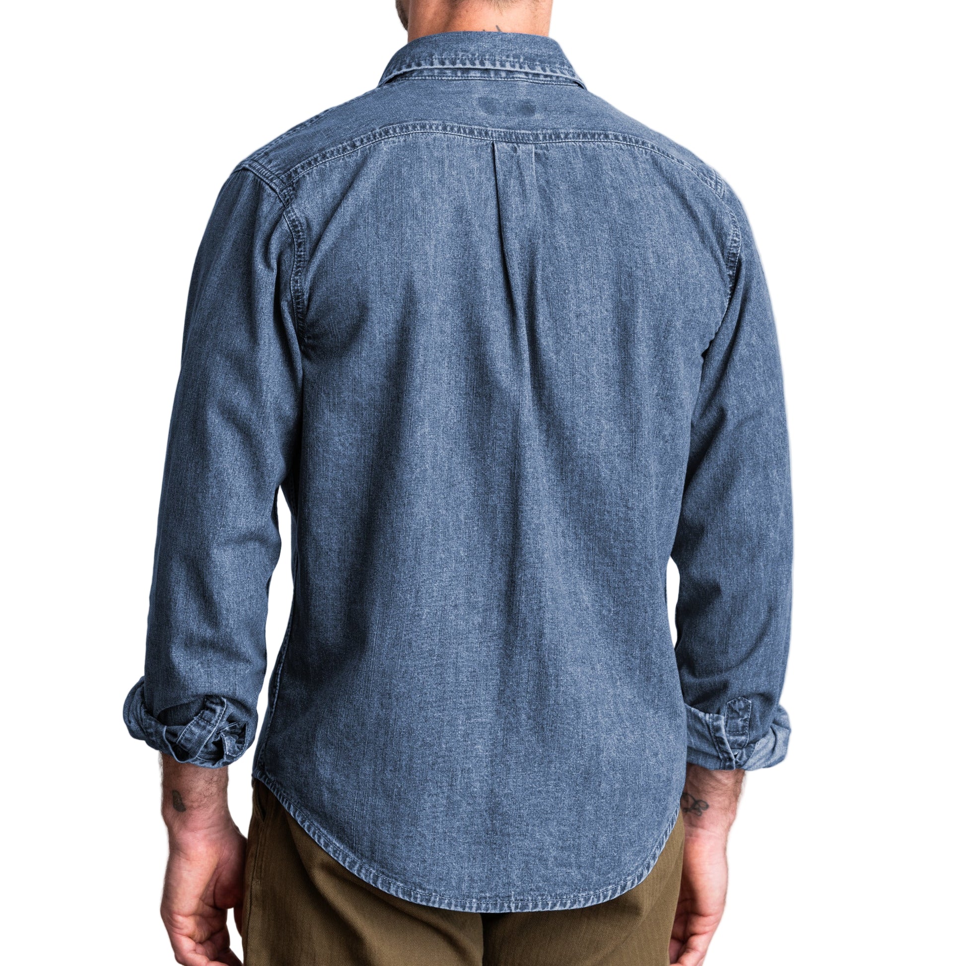 Cut from 100% cotton denim with a lived-in three-year wash, the Foundry Denim Shirt is built for longevity. The midweight 6 oz fabric strikes the balance between structure and comfort, reinforced with double-needle stitching and durable seams. A cross-back yoke with box pleat adds mobility, while barrel cuffs, button vents, and twin chest pockets ground it in classic workwear detail. Relaxed in fit, it’s a dependable layer made to carry through years of wear.