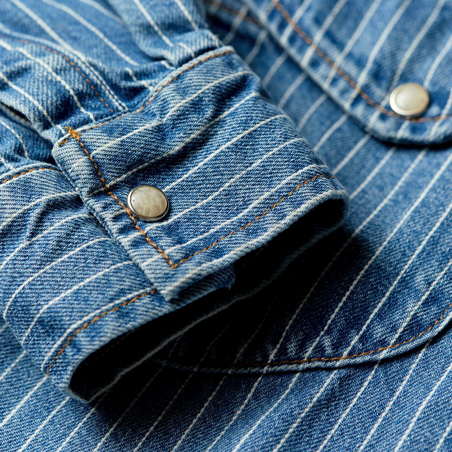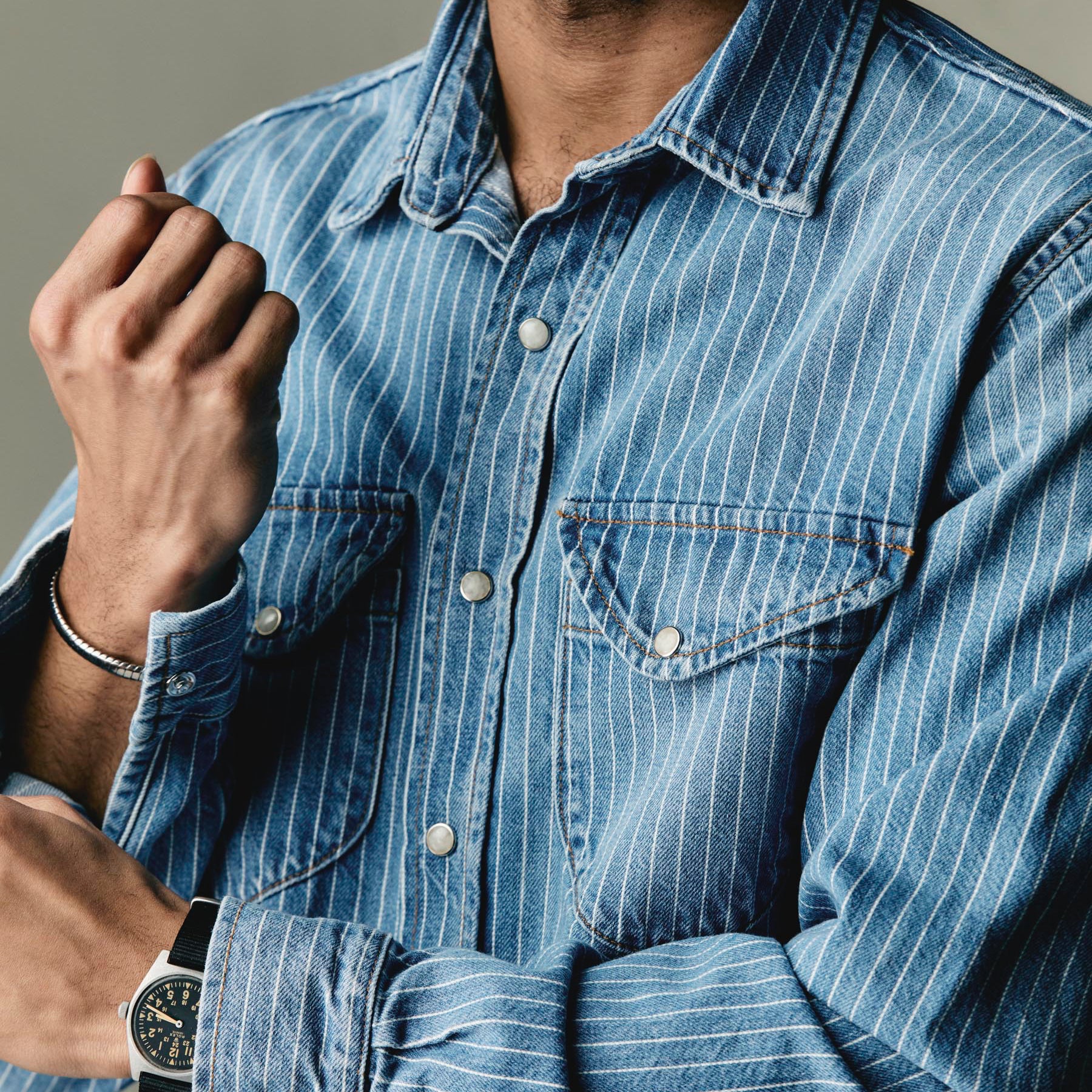 Indigo-dyed with classic pearl snaps, this striped shirt evolves naturally with wear and time.