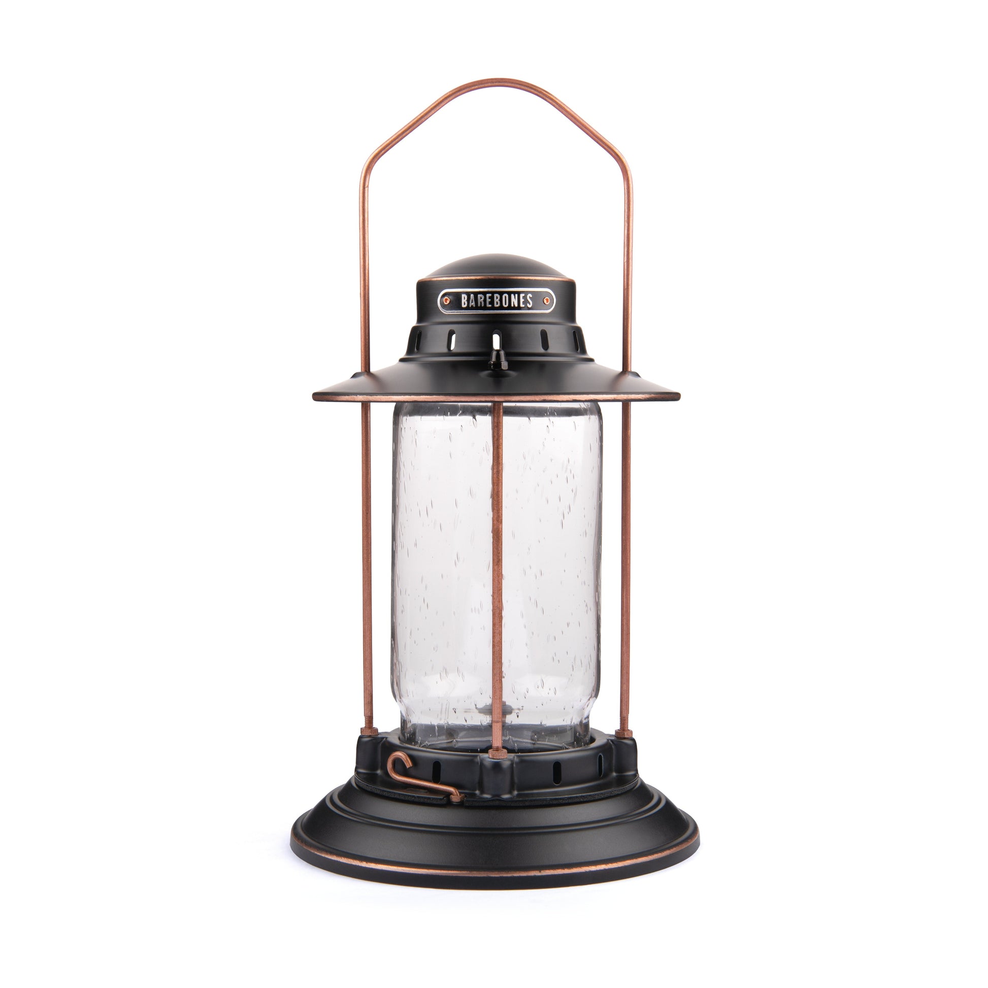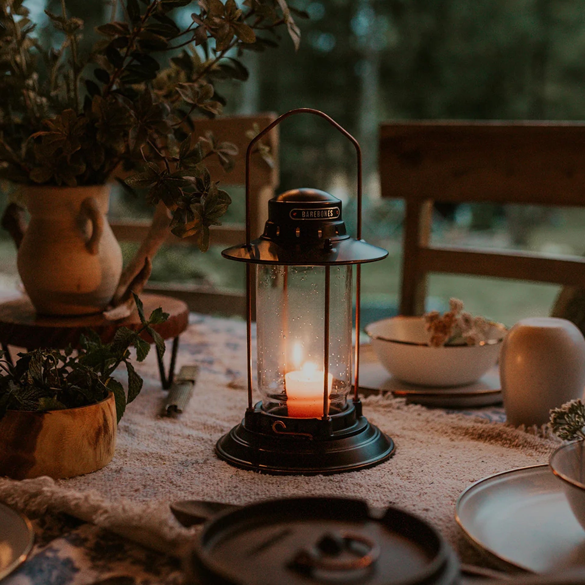Hurricane lamps have a history that dates back over a century. Designed to protect open flames from wind, their nostalgic design gets a modern makeover with this option from Barebones. It's made with a steel body, with a curved copper handle that makes it easy to carry or hang, and a replaceable seeded glass container that's easily replaceable if needed. The base is removable for cleaning or replacing lighting sources, as it works just as well with a wax candle as it does a flameless LED option.