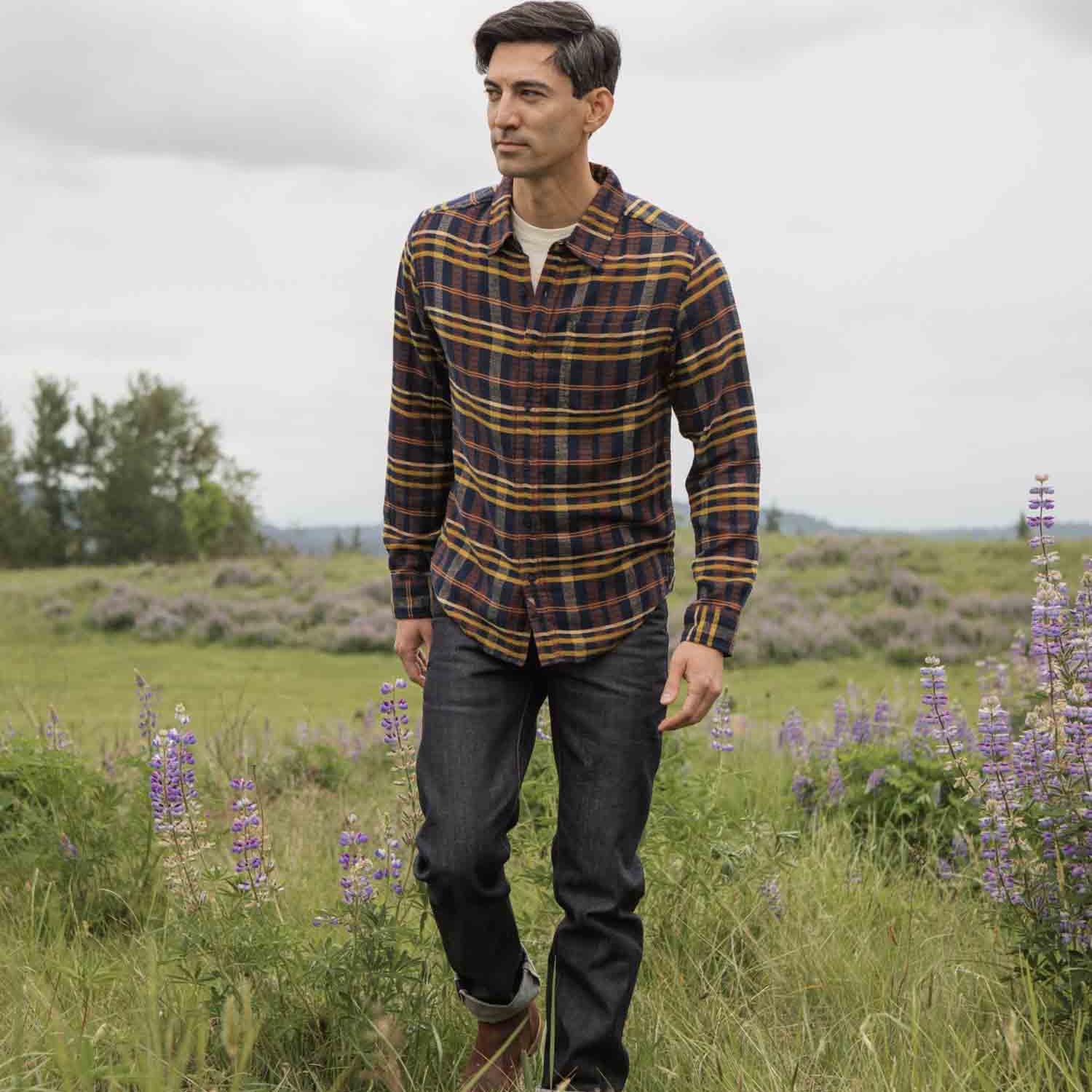 Soft cotton flannel in sun-washed desert tones gives this plaid shirt an easy, laid-back feel.