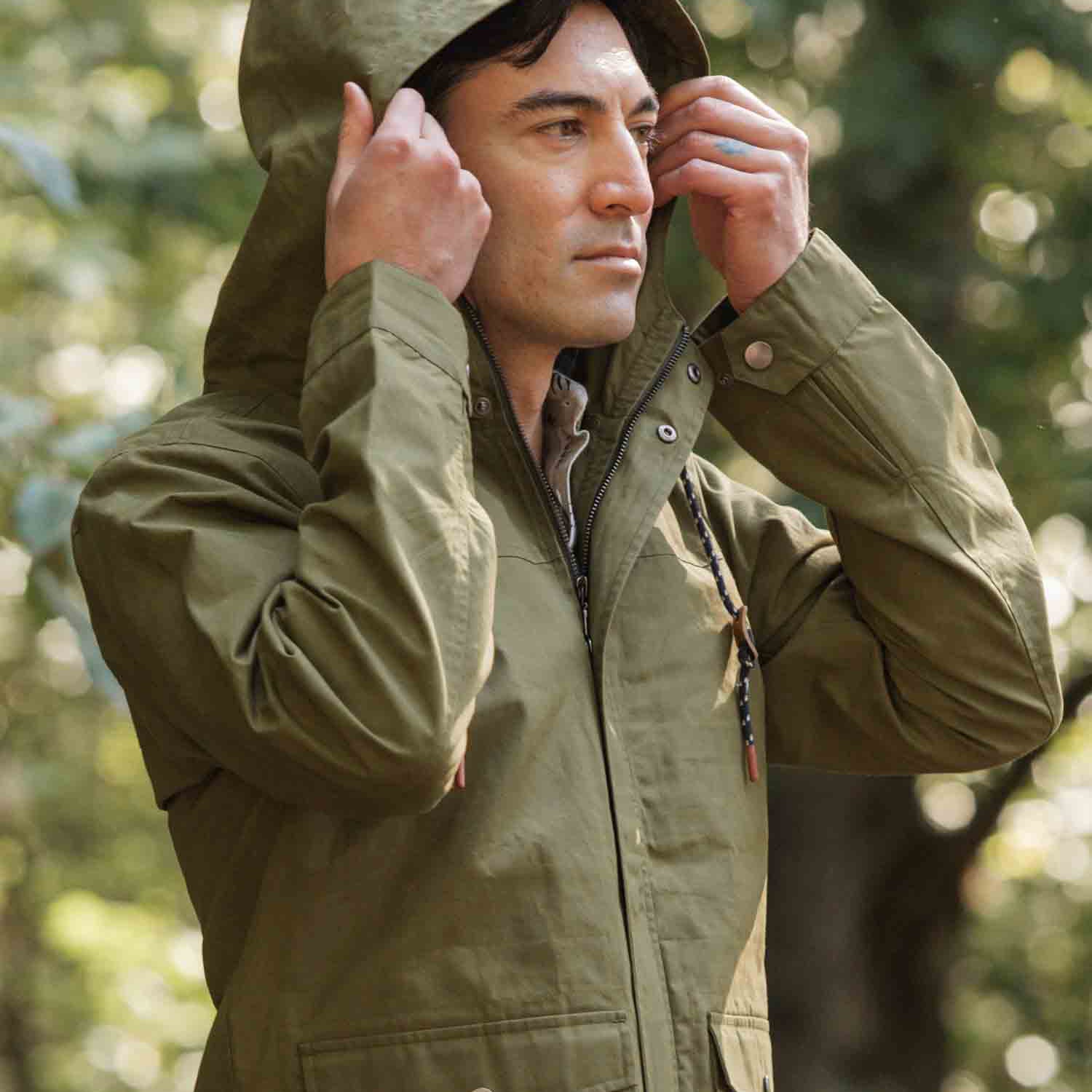 Built from British Millerain waxed canvas, this rugged, water-resistant jacket is designed to take on cool, wet weather with ease. The soft flannel lining adds warmth and comfort, while custom draw cords and a structured hood keep the elements out. Two patch pockets with side-entry hand warmers balance utility and everyday style, an over time the waxed finish develops a unique patina, giving each jacket a distinct, well-worn character that only gets better with age.