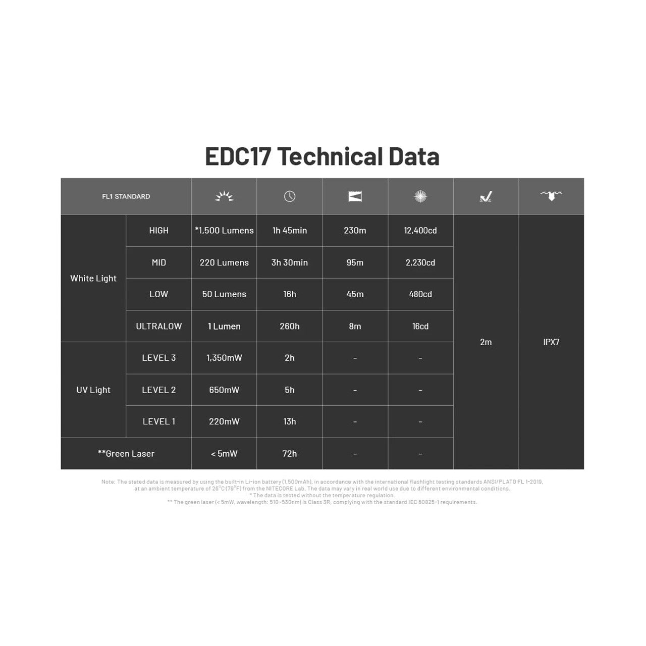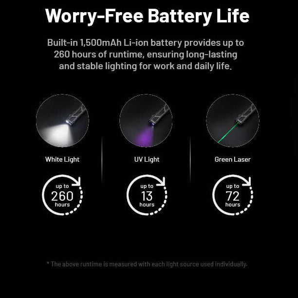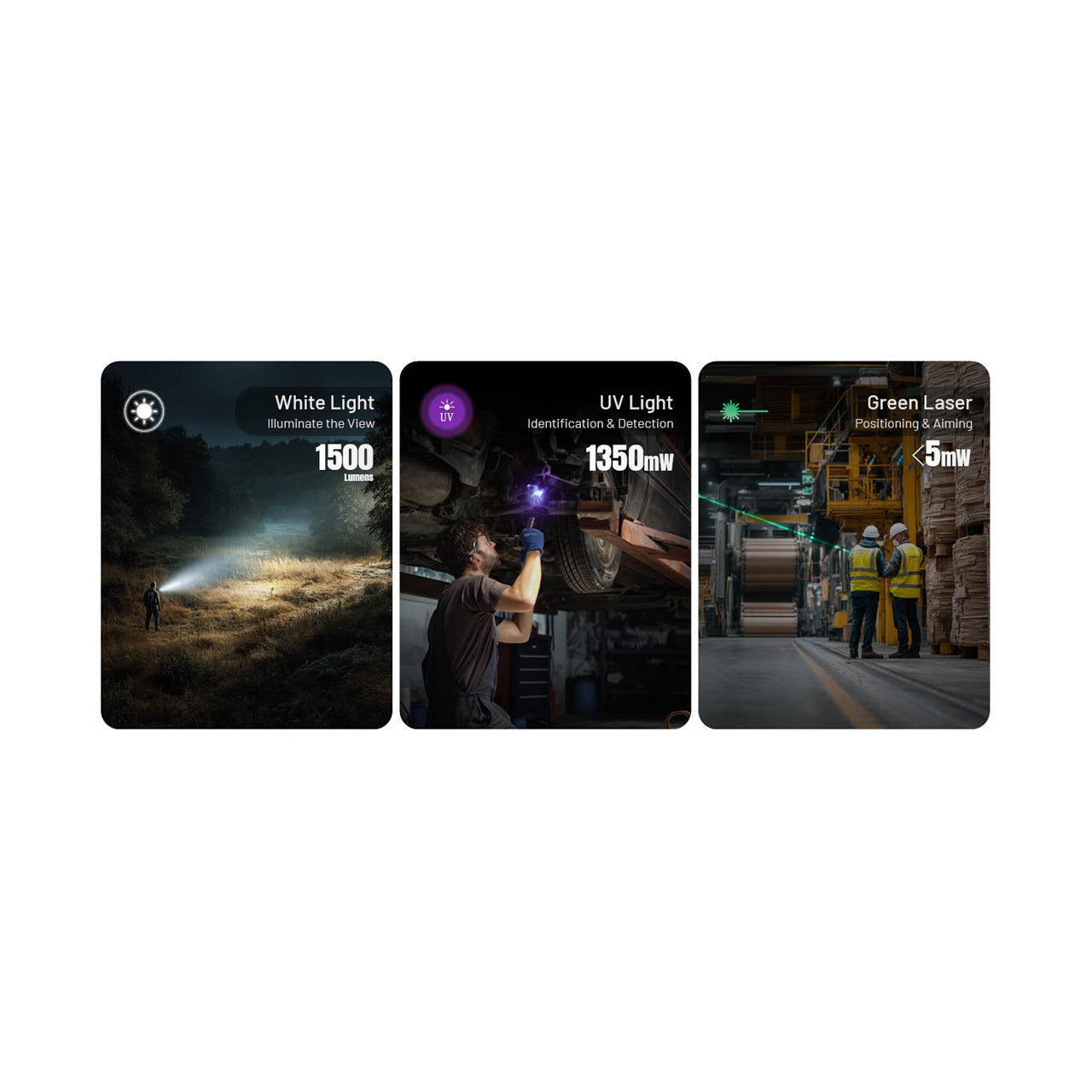 Compact enough for your pocket but powerful enough to light up half a block, the Nitecore EDC17 redefines what an everyday carry flashlight can do. Machined from durable aluminum with IPX7 waterproofing, it pushes out an impressive 1,500 lumens from its main LED while packing two more unexpected tricks — a UV beam for inspection work and a green laser pointer for precision or presentation. A built-in 1,500 mAh USB-C-rechargeable battery fuels up to 260 hours of runtime in ultralow mode, with impact resistance rated for 2 meters. Measuring just 4.84 inches long and tipping the scale at 3.7 ounces, it’s small enough to disappear into your pocket until the moment you need serious light, a clean UV sweep, or a pinpoint laser line — all at the touch of a button.