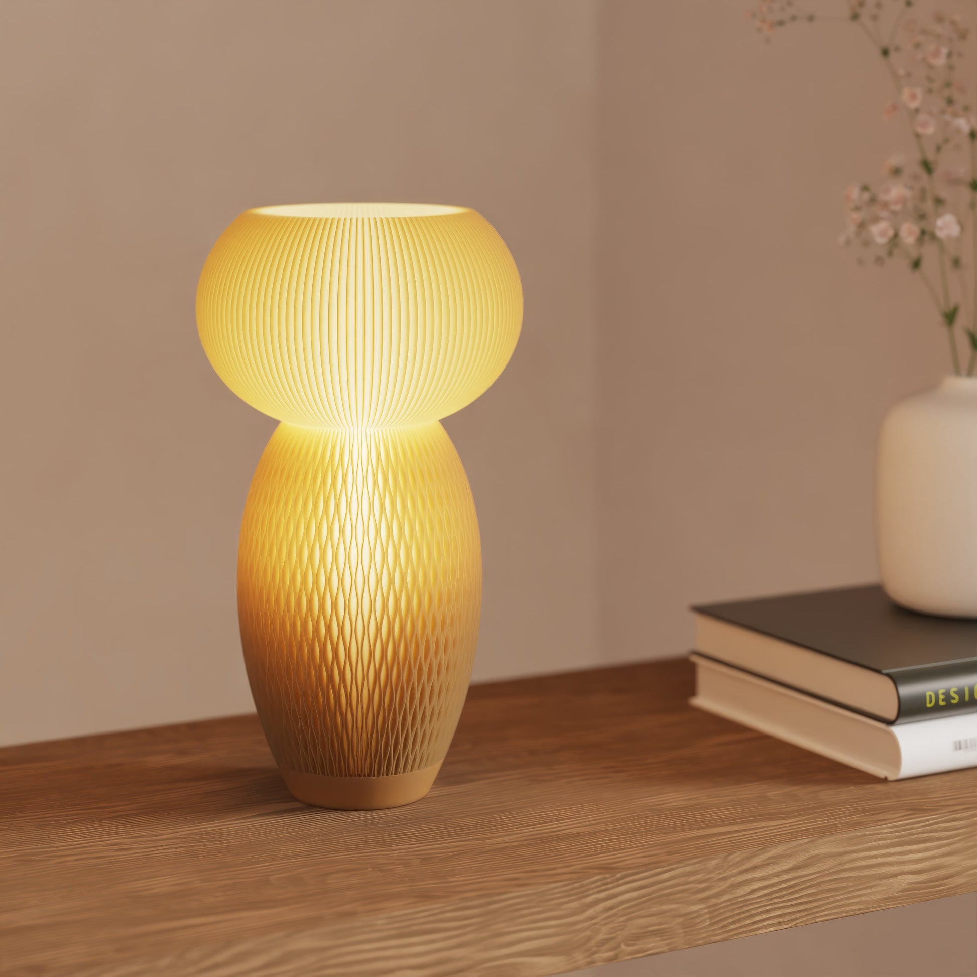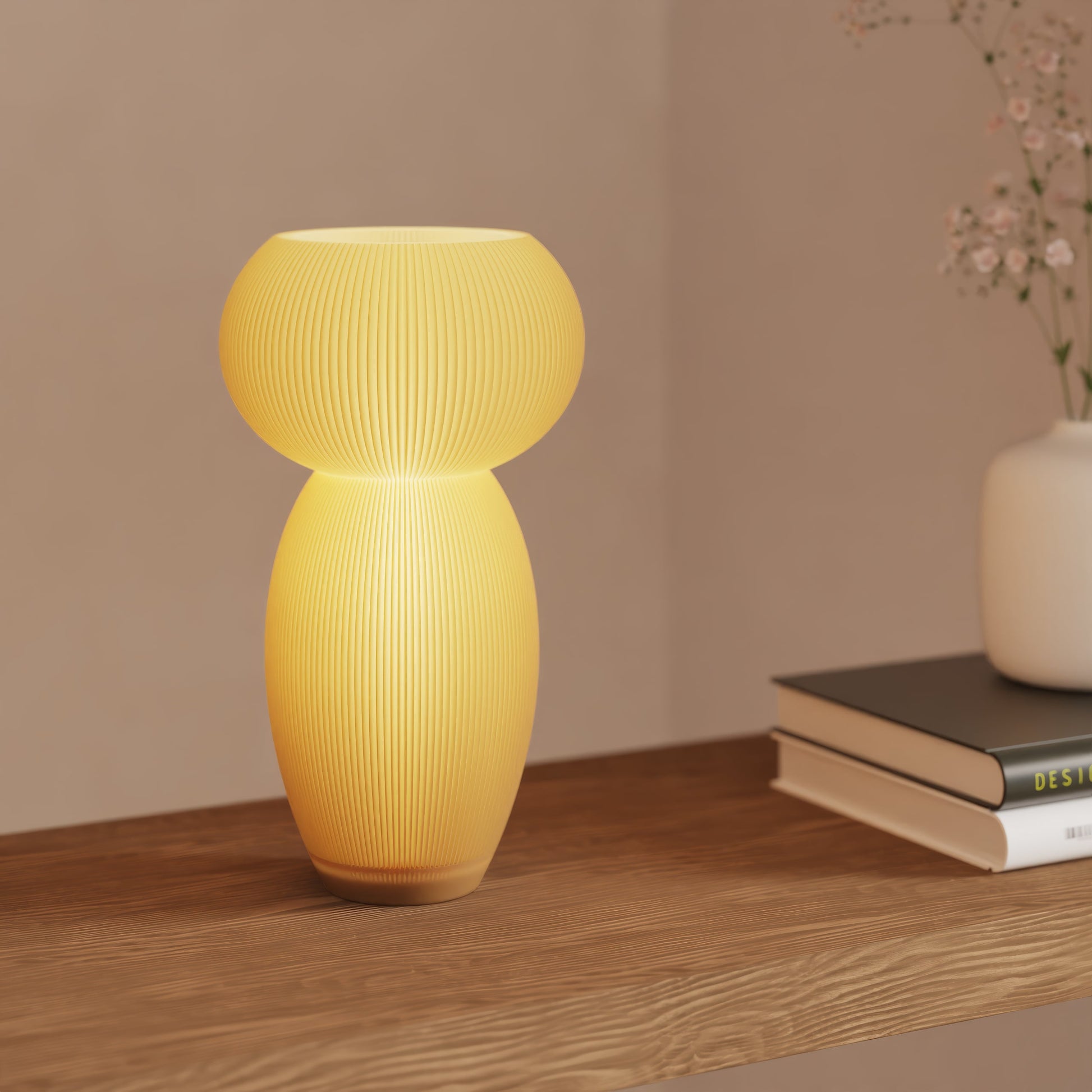 Inspired by Japanese Kokeshi design, this sculptural light pairs smooth curves with a warm caramel glow. Its shape and tone bring depth and character to any room, creating a light that feels alive and welcoming. Available in multiple hues and textures, it can be customized to suit any setting. Built to add warmth, presence, and quiet energy wherever it’s placed.
