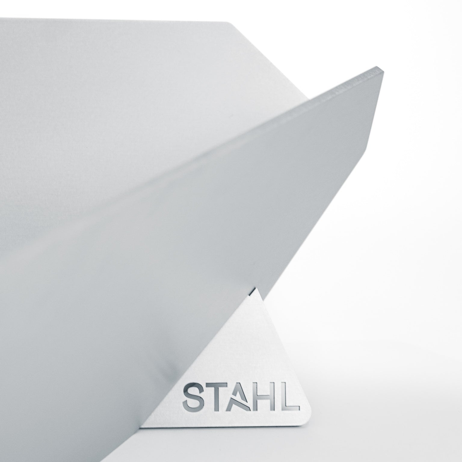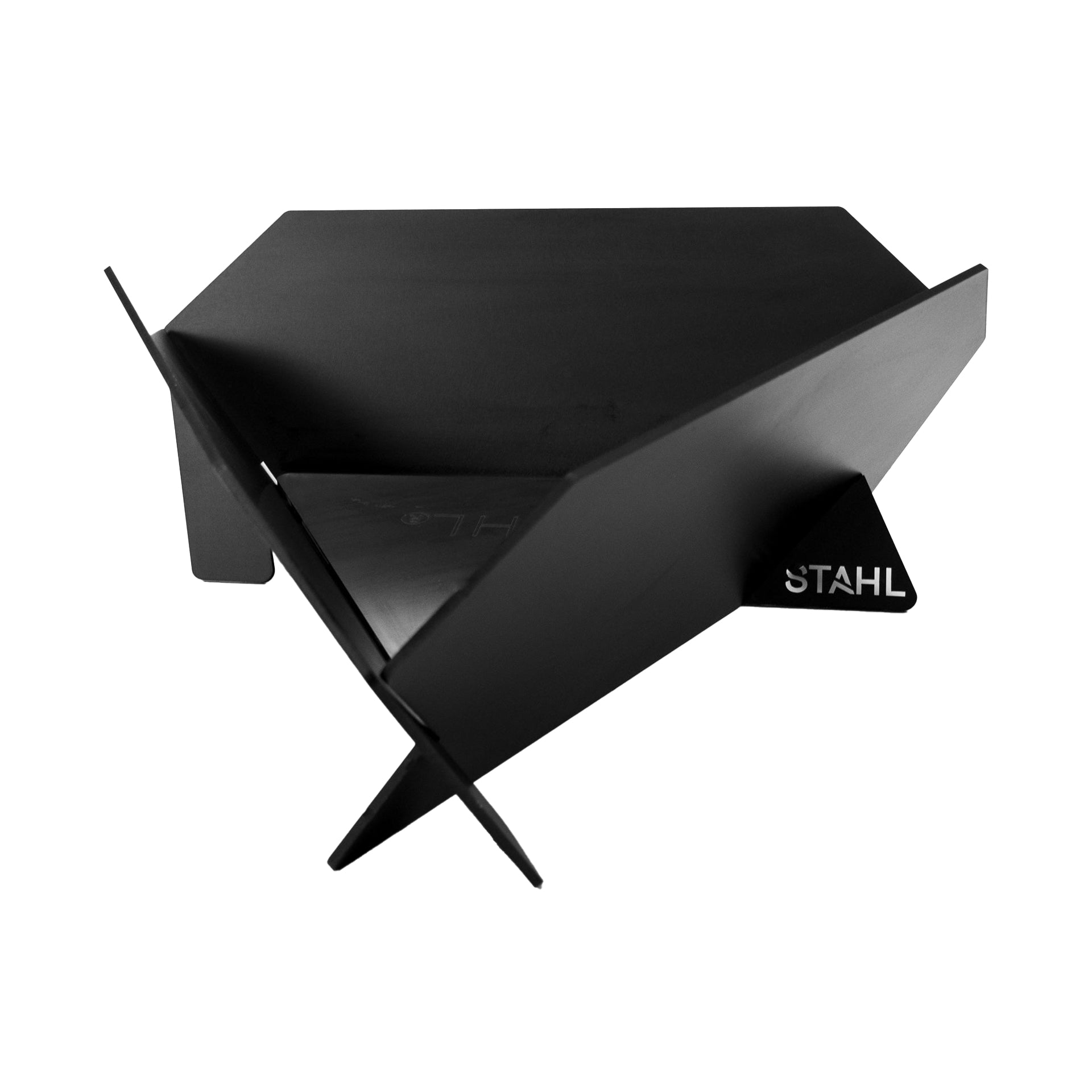 Stahl's innovative metal firepit has bold angles, with no tools required.