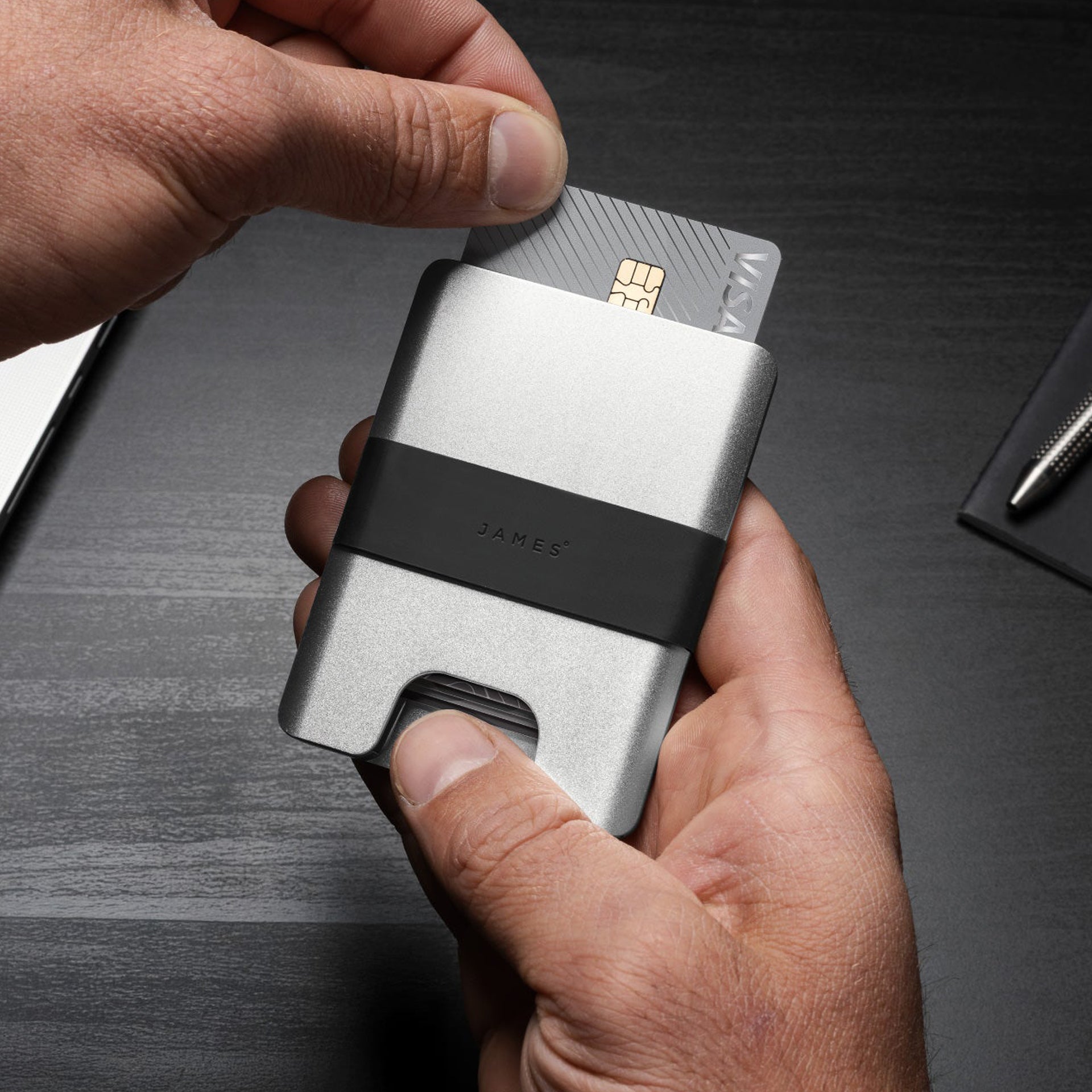 The James Brand is best known for its knives, made with heirloom-quality materials but modern design sensibilities. With The Lowe, they bring that same commitment to quality and minimalism to bear on the wallet. CNC-machined from aluminum, it's satisfyingly slim while still carrying everything one would expect from a leather pocket-filler. The aluminum shell naturally blocks RFID and is wrapped in a molded silicone band for cash or overflow tokens, allowing for versatility without compromising its minimal geometry.