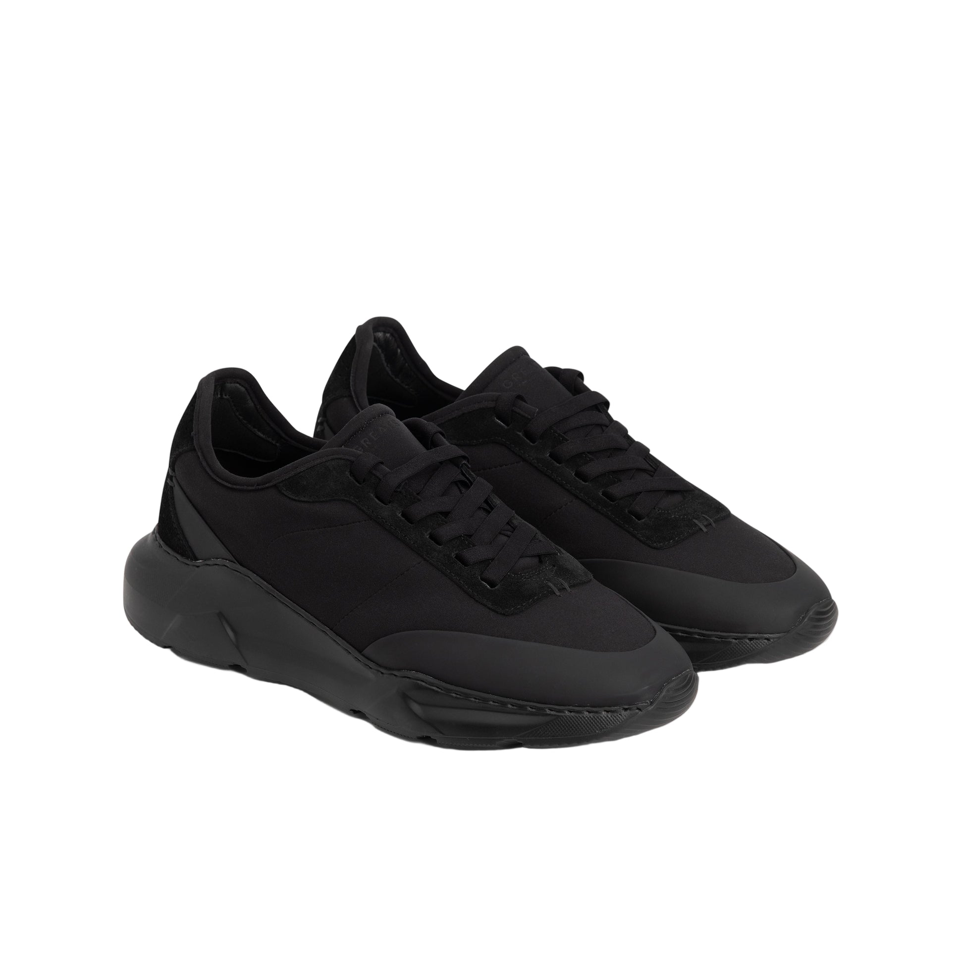 Matte black runners built for the city, blending Italian craft, recycled materials, and all-day comfort.