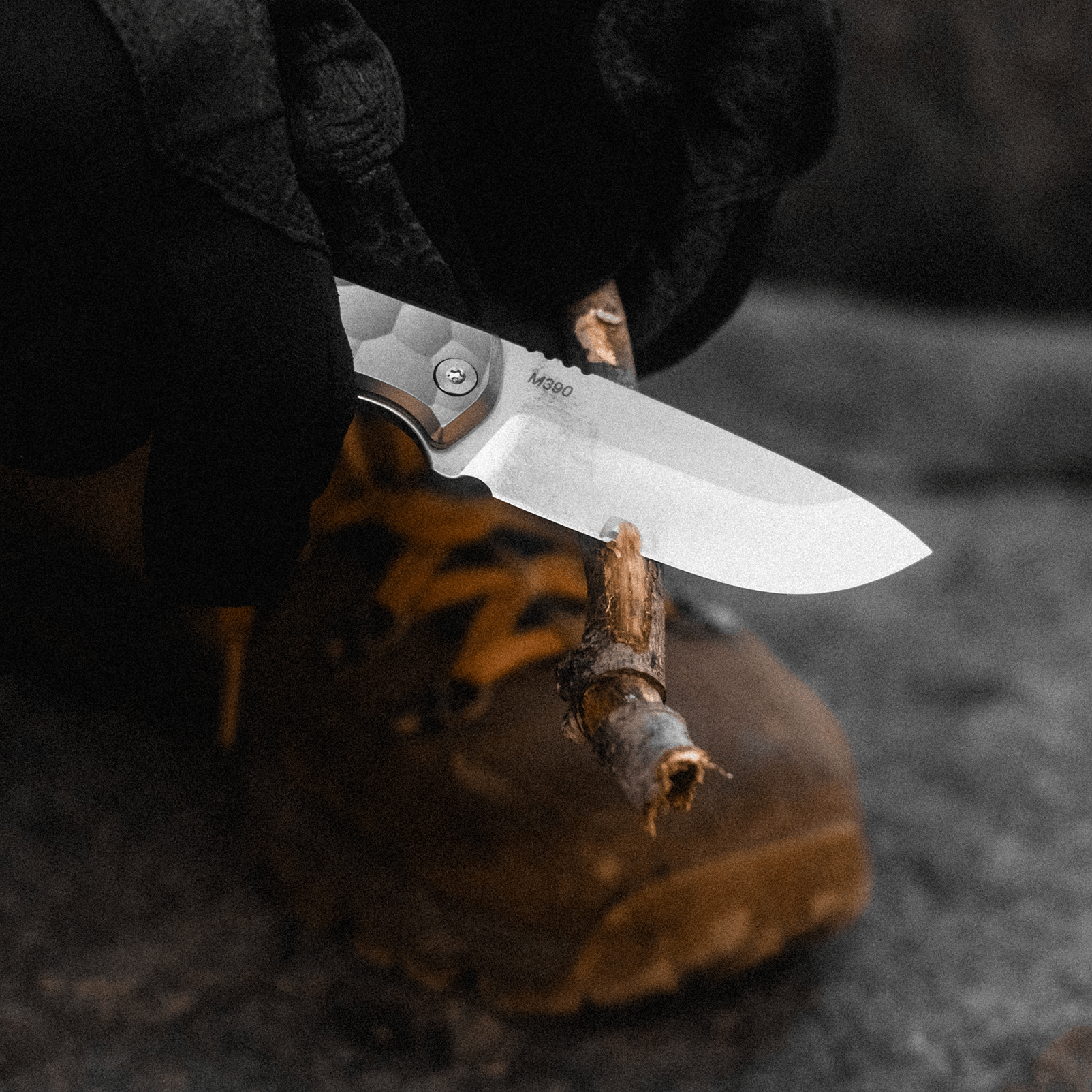 Built as a full tang fixed blade with rock solid construction and brutal minimalism, the Bornas is the kind of knife you reach for. Forged from premium Böhler M390 steel and paired with CNC‑machined Grade 5 titanium scales, it delivers performance, toughness, and a lifetime of dependable edge retention. At just 5.9″ overall with a 2.75″ blade, it’s compact enough for discreet carry but stout enough to handle back‑country tasks or everyday wood and rope chores. The included Kydex sheath and matching titanium lanyard bead give it a ready‑for‑action, refined‑tooled vibe. If you want a knife that’s built like a tool, styled like an heirloom, and ready for real work, this is the one you stash in your pack and forget until you need it most.