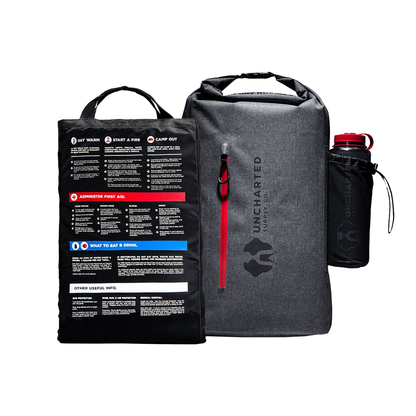 Curated by top survival experts, Uncharted's Seventy2 Survival System could be the difference between life and death during an emergency. It's comprised of high-quality tools and instructions designed to keep you alive during the first 72 hours after a crisis — the period when most emergencies are resolved. To create the kit, the creators worked closely with first responders, doctors, special forces operators, mountain guides, and other experts to make sure that each item included addresses a specific need common to emergencies. All the items come packaged in a durable, waterproof 600D tarpaulin shell, with a military-grade canvas insert featuring screen-printed graphics and instructions, a hard exoskeleton, and PVC inserts that can double as snowshoes or a sling.