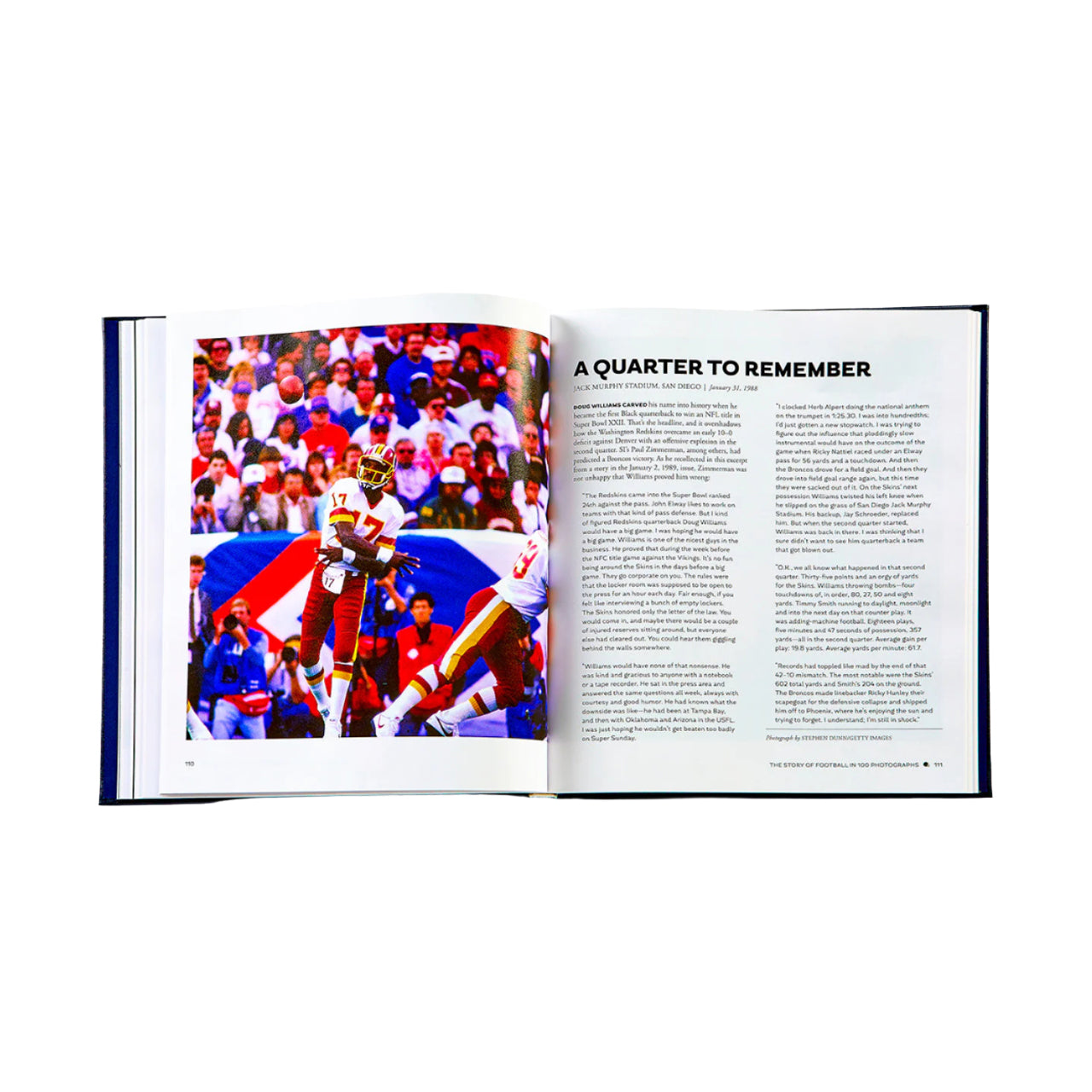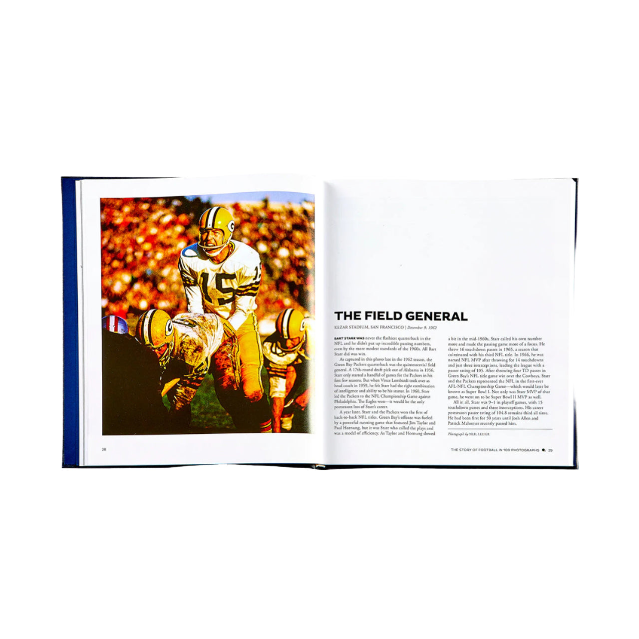 For decades, Sports Illustrated covered football not just with words, but with stunning imagery. The Story of Football in 100 Photographs covers decades of America's favorite sport, from the dawn of the pro era, to Lombardi's Packers, to modern Super Bowls. Each photo is joined by the article that originally accompanied it, allowing the book to not only serve as a collection of outstanding photography but a true piece of journalism history. This premium edition is bound in navy leather with gold foil on the cover and spine, with a black football player inlay on the former.