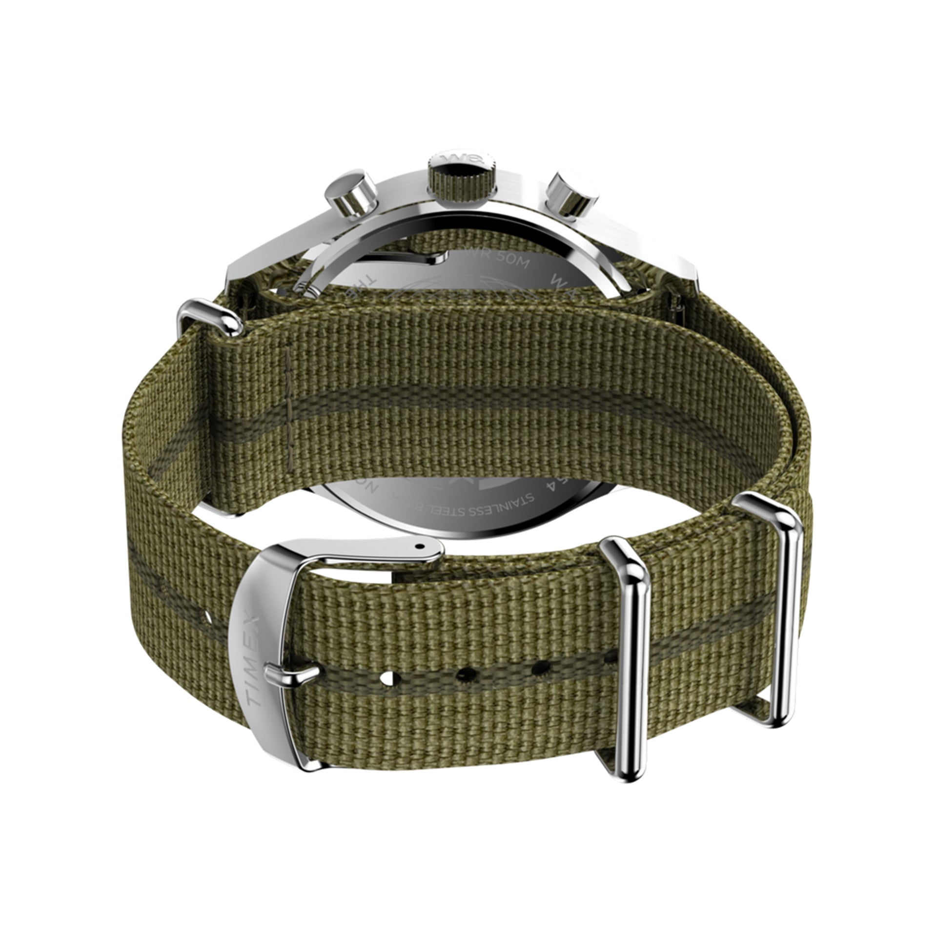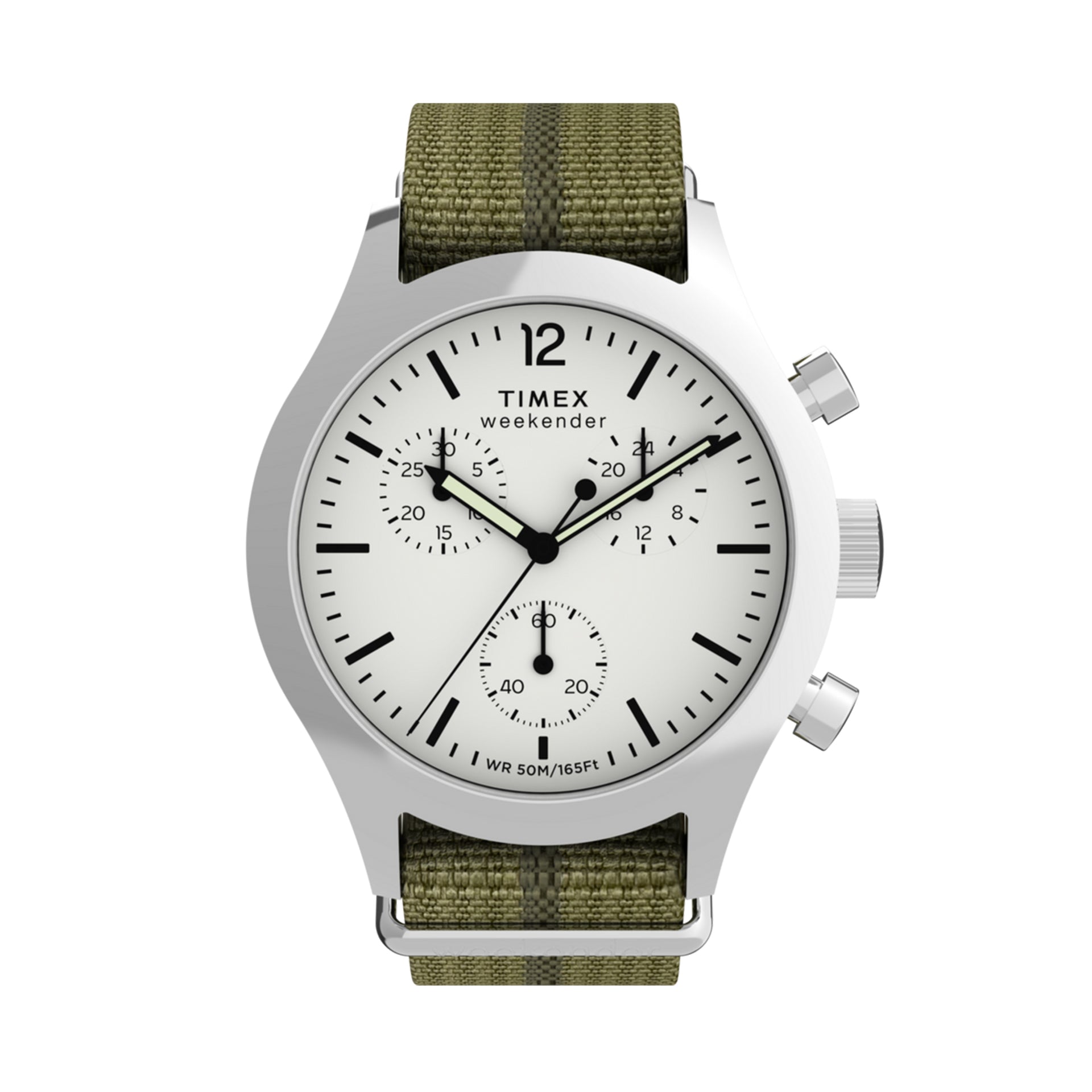 A chronograph built for weekends that spill into late nights, the Timex Weekender New England Chronograph blends clean design with everyday function. The 40mm stainless steel case houses a crisp white dial with three subdials and a date window, keeping things sharp but approachable. A slip-through fabric strap—crafted from recycled materials—keeps it lightweight and versatile, letting you swap colors and textures on a whim. Quartz movement ensures no-nonsense accuracy, while 50 meters of water resistance means it won't flinch at a dip in the pool. Finished with Timex's understated New England minimalism, it's an eco-minded daily driver with enough utility to handle timing laps or last-minute flights.