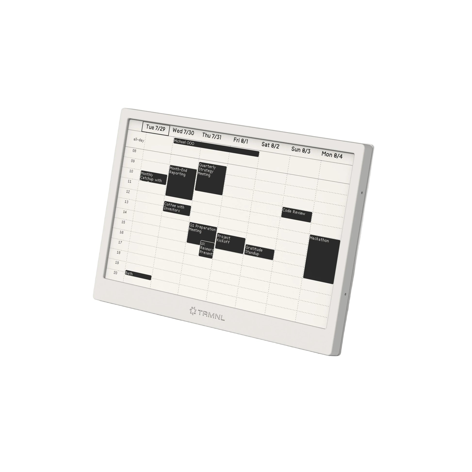 Your phone is a distraction machine. TRMNL is the antidote. The 7.5-inch e-ink display sits on your desk or wall and shows only what you tell it to: your calendar, the weather, your to-do list, a stock price, cycling through a custom playlist you build from a library of more than 400 plugins. No notifications, no algorithms, no blue light. The battery lasts up to three months on a single charge, so it just sits there and does its job. Privacy-first architecture keeps your local network yours. For the tinkerers, custom plugins can be built in under five minutes.
